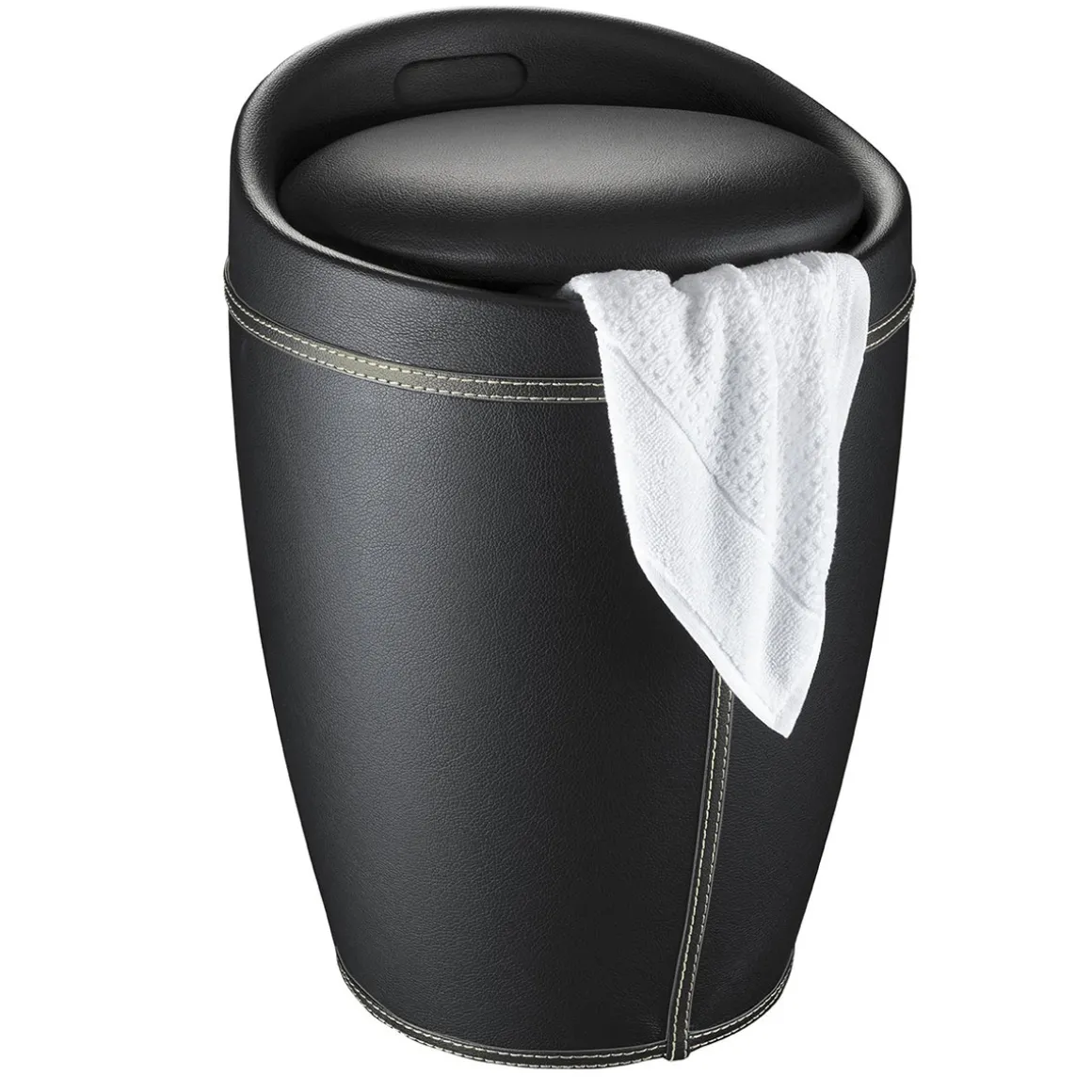 Wenko Hocker Candy Black in Lederoptik mit Wäschesack – Der perfekte Badhocker für Stil und Funktionalität