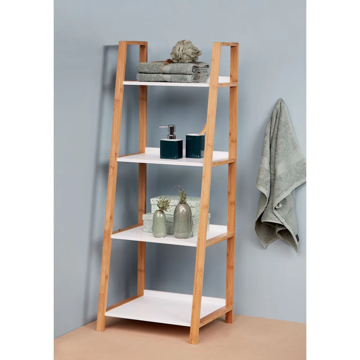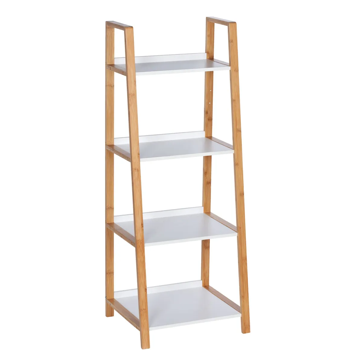 Das Wenko Regal Finja aus Bambus bietet mit seinen 4 Etagen viel Stauraum und ist dabei besonders platzsparend. Es überzeugt nicht nur durch seine Funktionalität, sondern auch durch sein modernes Design.
