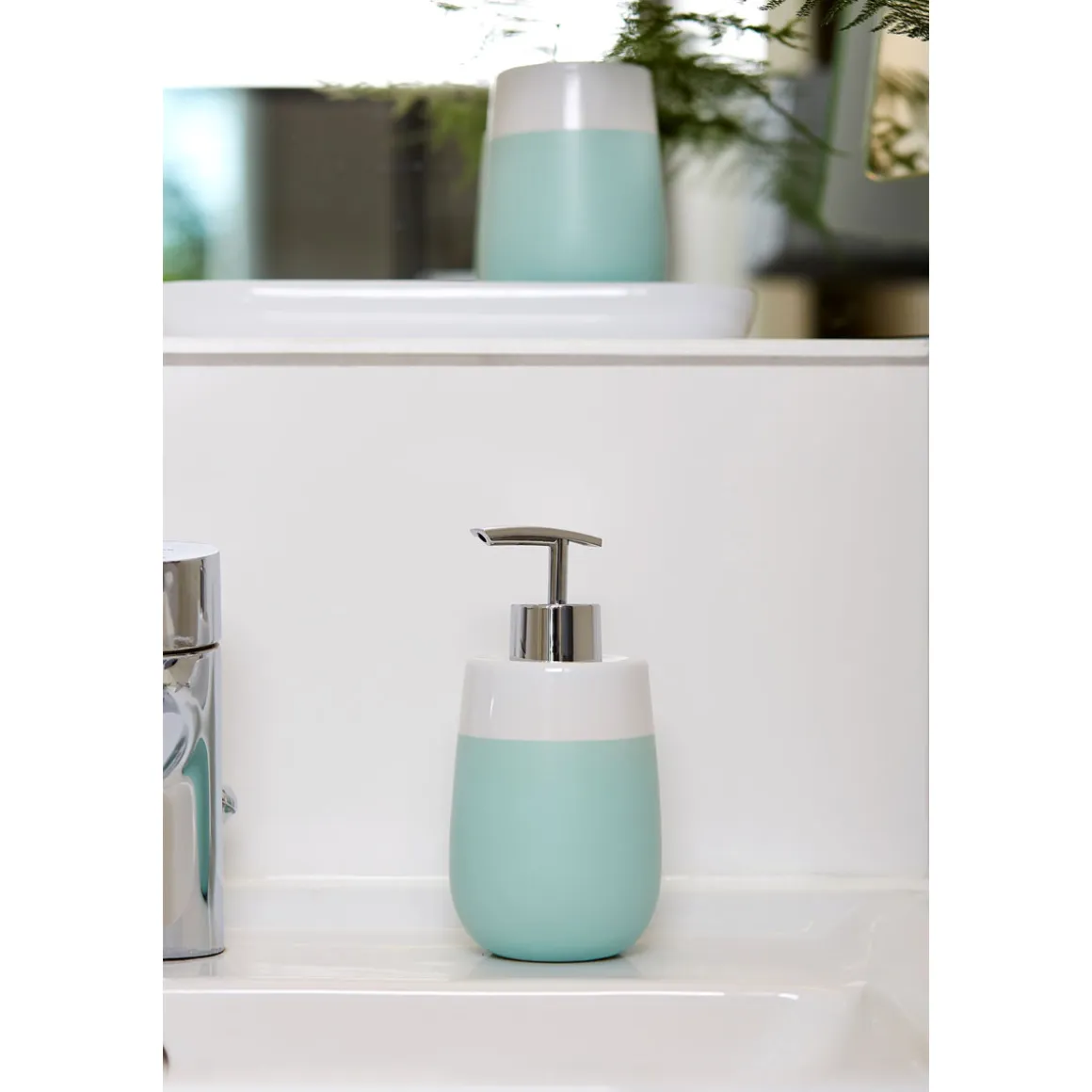 Wenko Seifenspender Malta mint/weiß – Frische und Funktionalität für Ihr Badezimmer