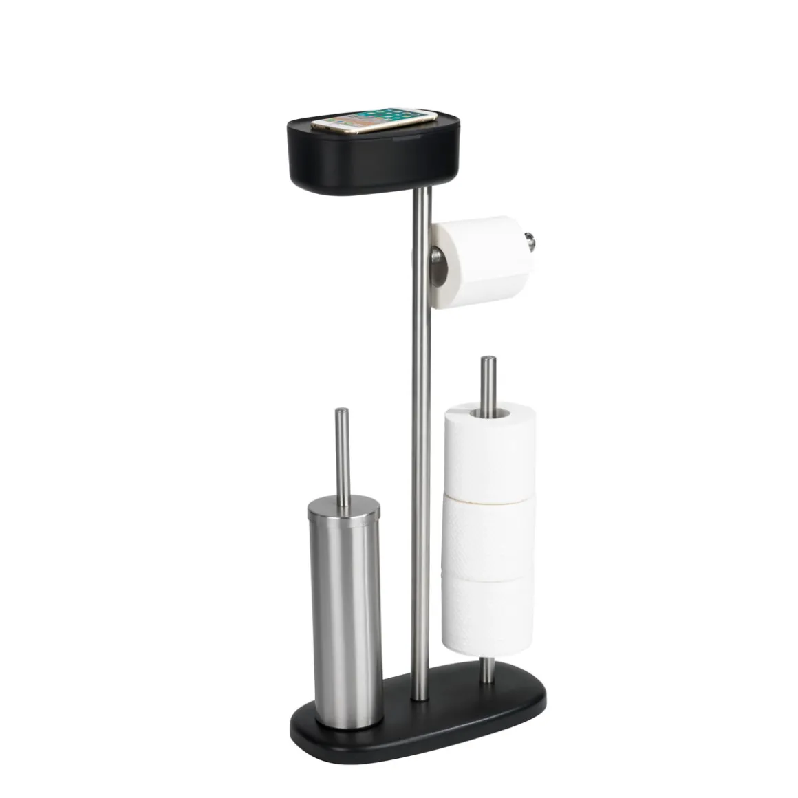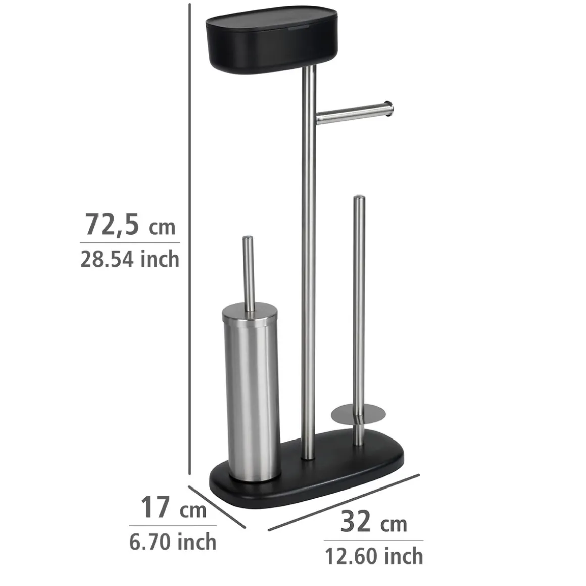 Die Wenko Stand WC-Garnitur mit Box Rivazza Schwarz ist eine elegante und praktische Lösung für Ihr Badezimmer. Mit integriertem Toilettenpapierhalter, Ersatzrollenhalter und WC-Bürstenhalter mit Ablagebox bietet sie alles, was Sie benötigen, um Ihre Toilette sauber und ordentlich zu halten.