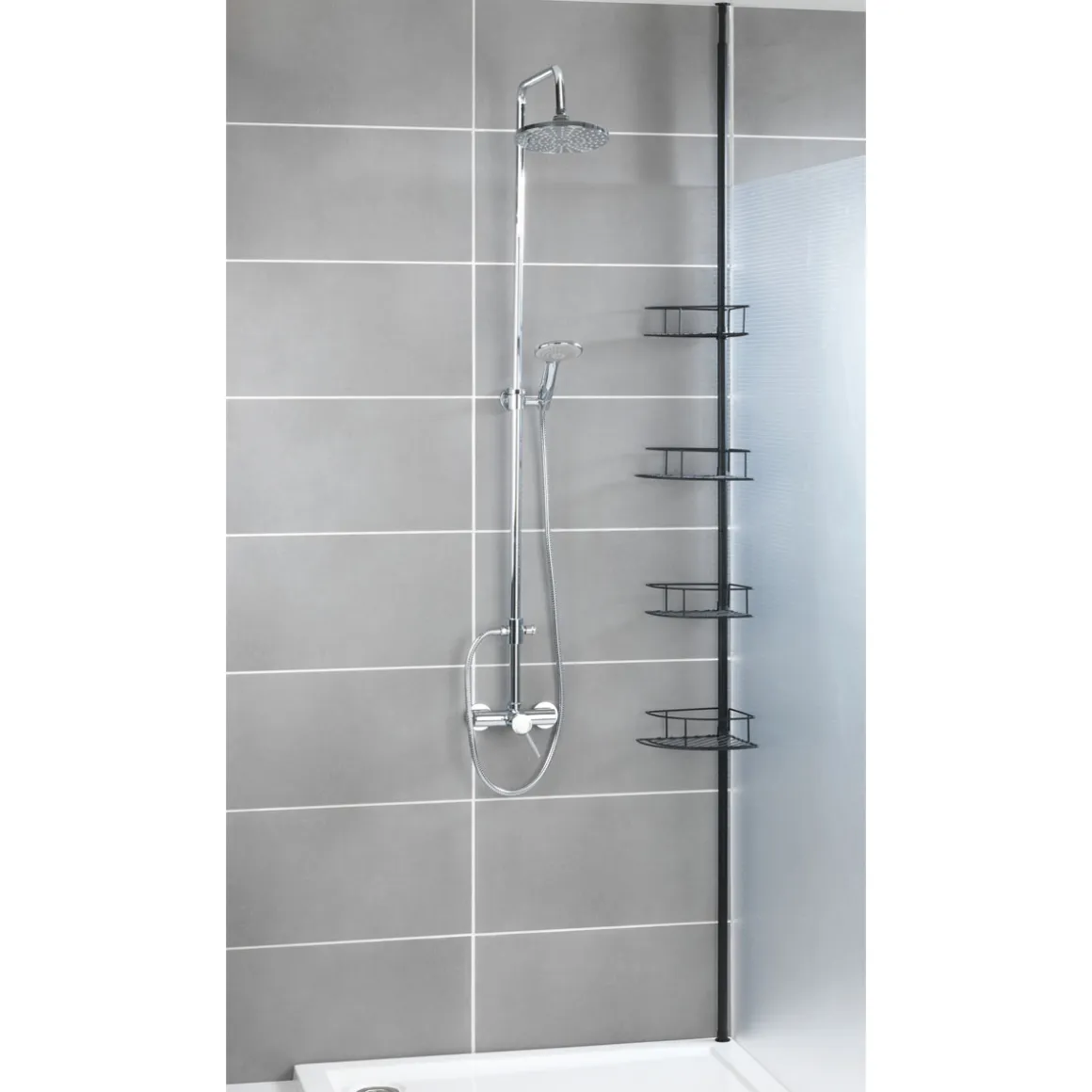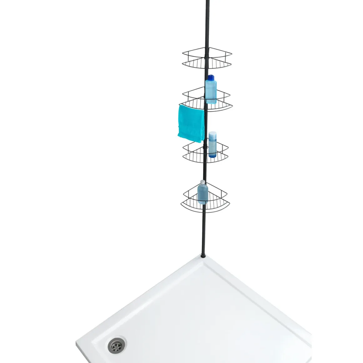 - Lieferumfang: Teleskopstange, 4 Ablagen