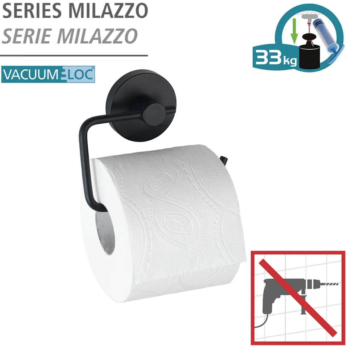 - – Lieferumfang: Toilettenpapierhalter, Vacuum-Loc® Befestigung, Pumpe
