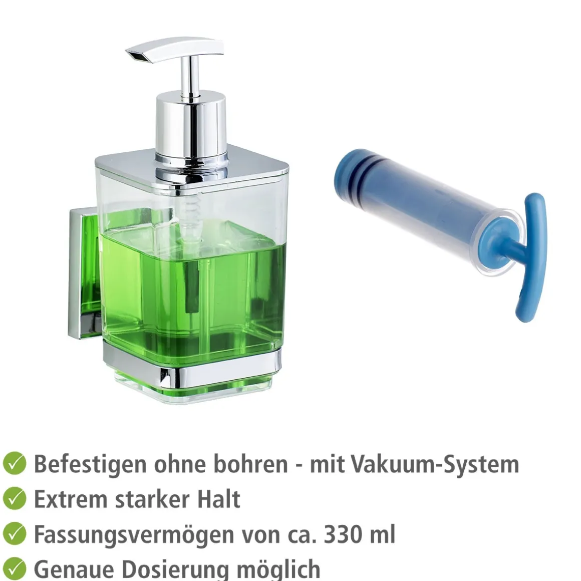 - Lieferumfang: Seifenspender, Vacuum-Loc® Befestigung inkl. Pumpe