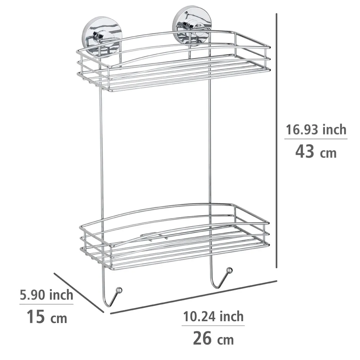 Mit dem Wenko Vacuum-Loc Wandregal 2 Etagen schaffen Sie im Handumdrehen zusätzlichen Stauraum in Ihrem Badezimmer. Das Regal ist aus hochwertigem Stahl gefertigt und verchromt, was ihm eine glänzende Oberfläche verleiht. Die Montage erfolgt kinderleicht ohne Bohren oder Schrauben dank der innovativen Vacuum-Loc® Technologie.
