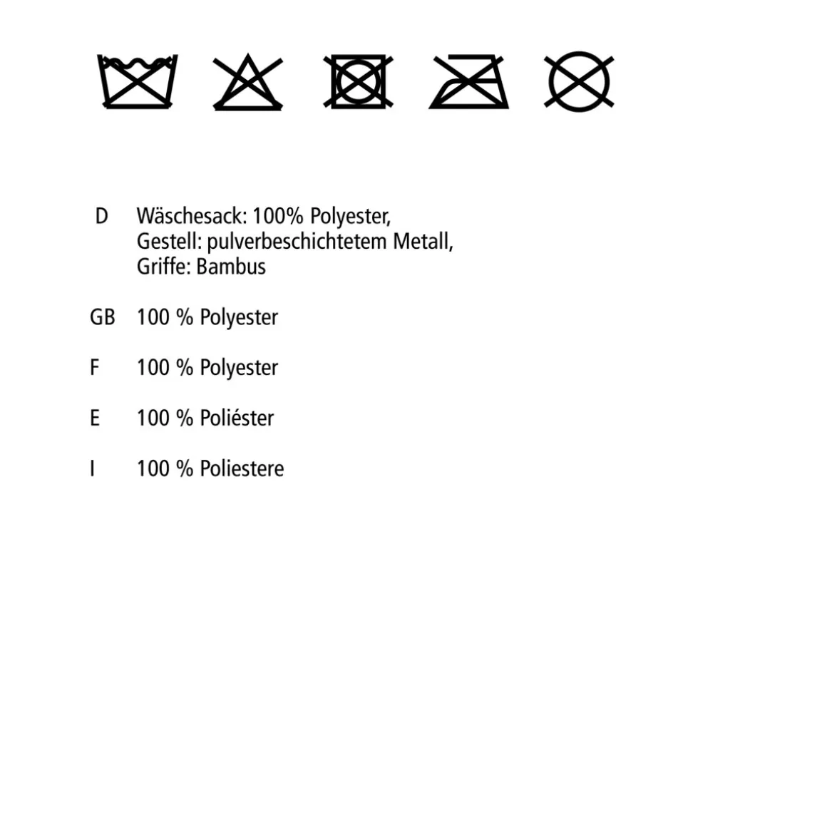 - Material: Gestell aus pulverbeschichtetem Metall, Griffe aus Bambus, Wäschesack aus 100% Polyester