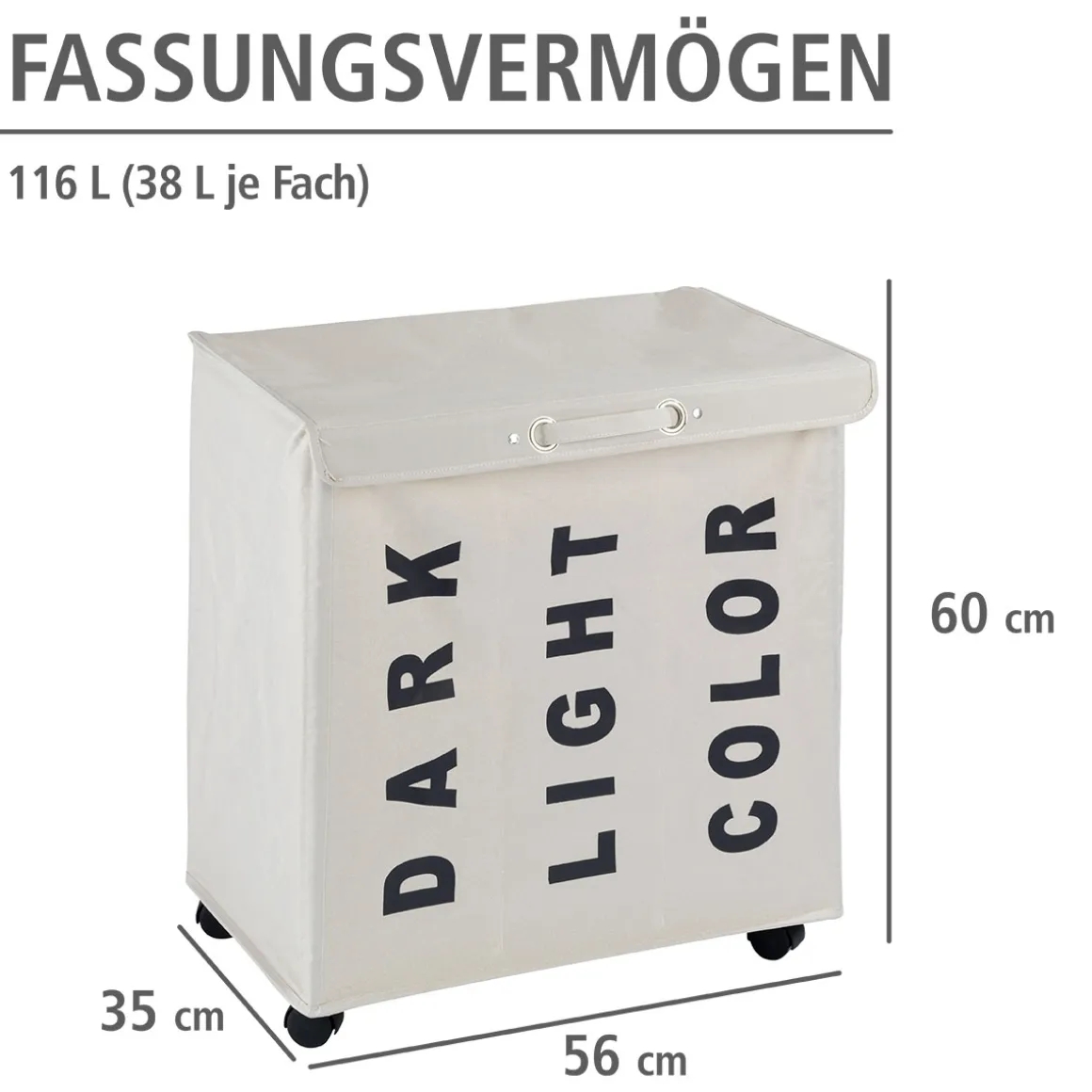 Mit dem Wenko Wäschesammler Trivo Beige wird das Sammeln und Transportieren Ihrer schmutzigen Kleidung zum Kinderspiel. Der geräumige Korb bietet Platz für bis zu 116 Liter und ist dank seiner Rollen einfach zu bewegen.