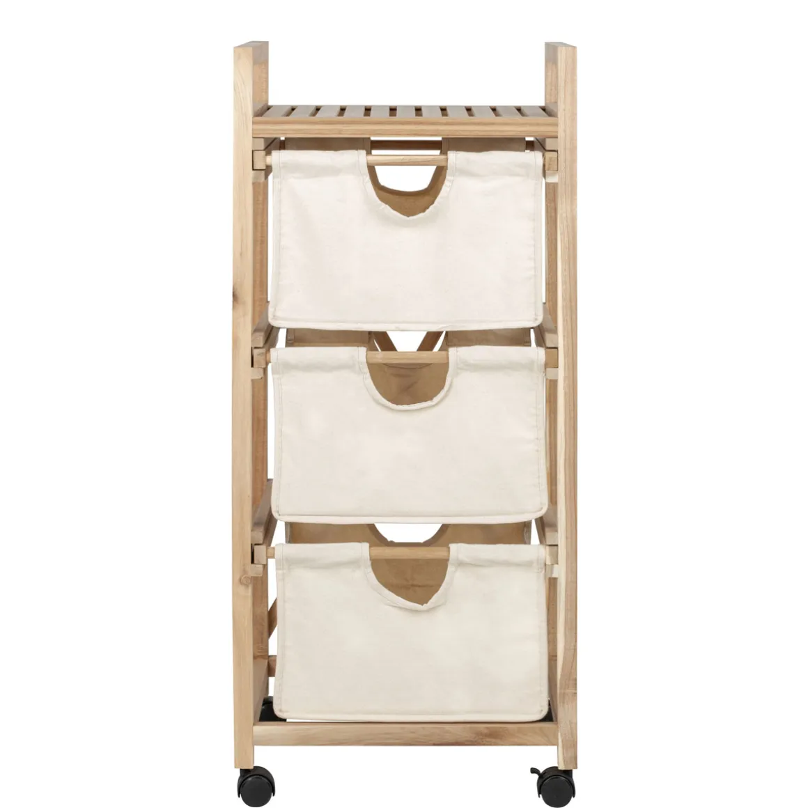Mit dem Wenko Wäschewagen Acina wird das Sortieren und Transportieren von Schmutzwäsche zum Kinderspiel. Dank der drei geräumigen Schubladen aus Holz und den Rollen lässt sich der Wagen flexibel im Haushalt einsetzen.