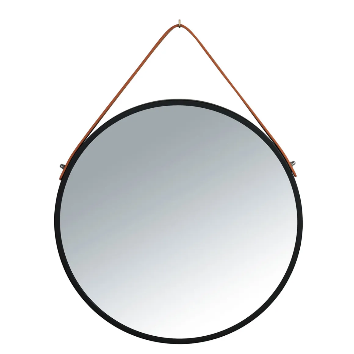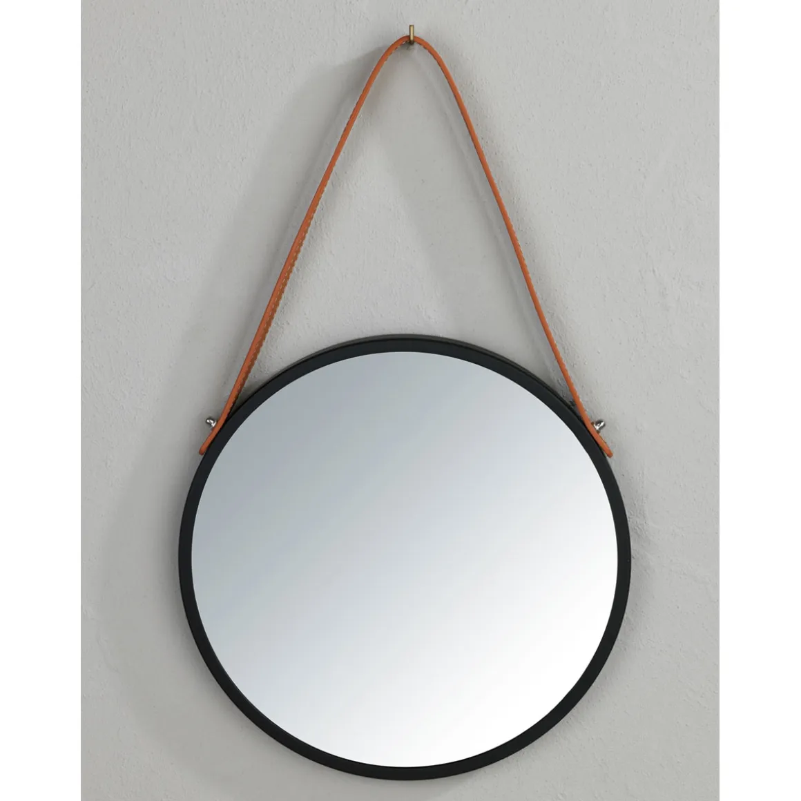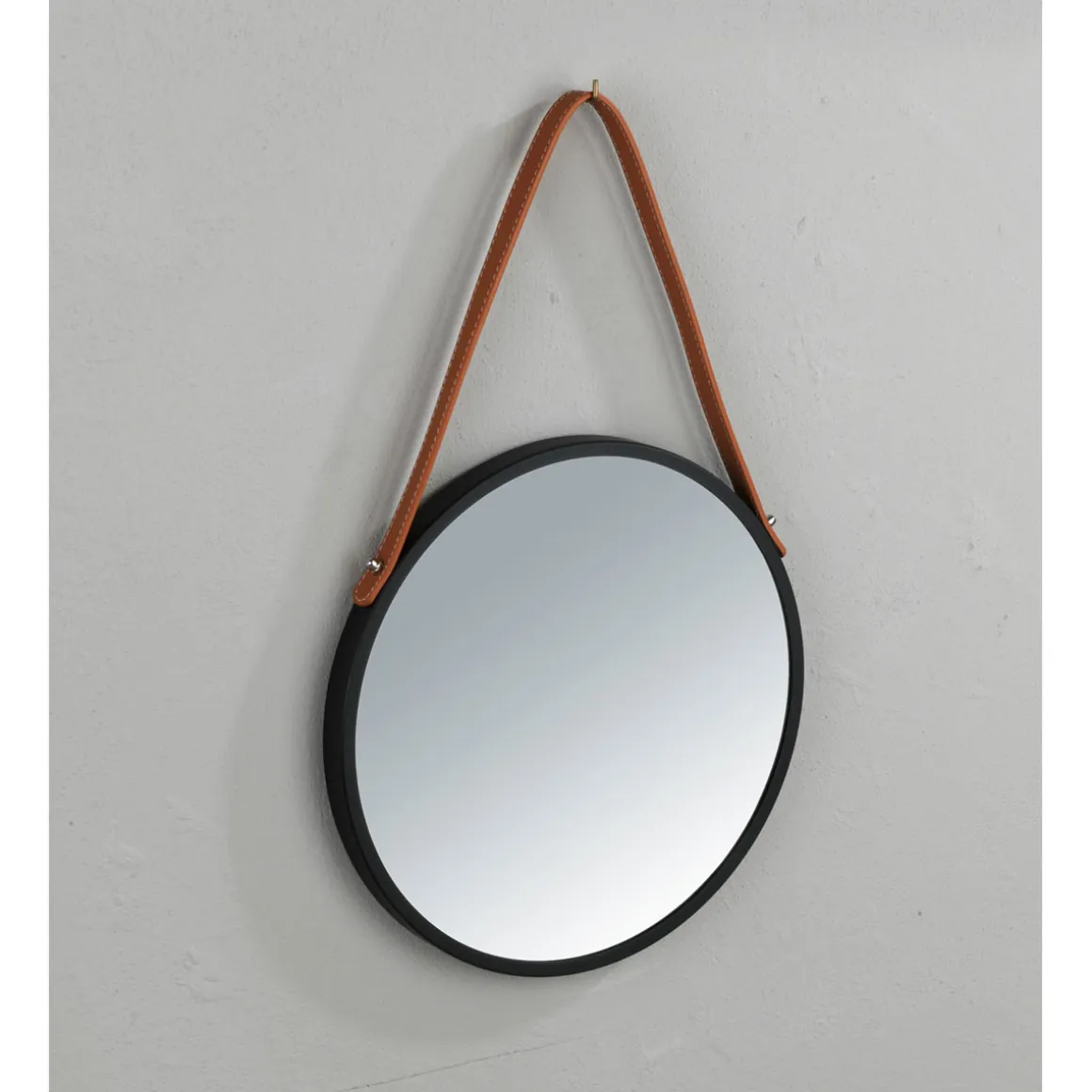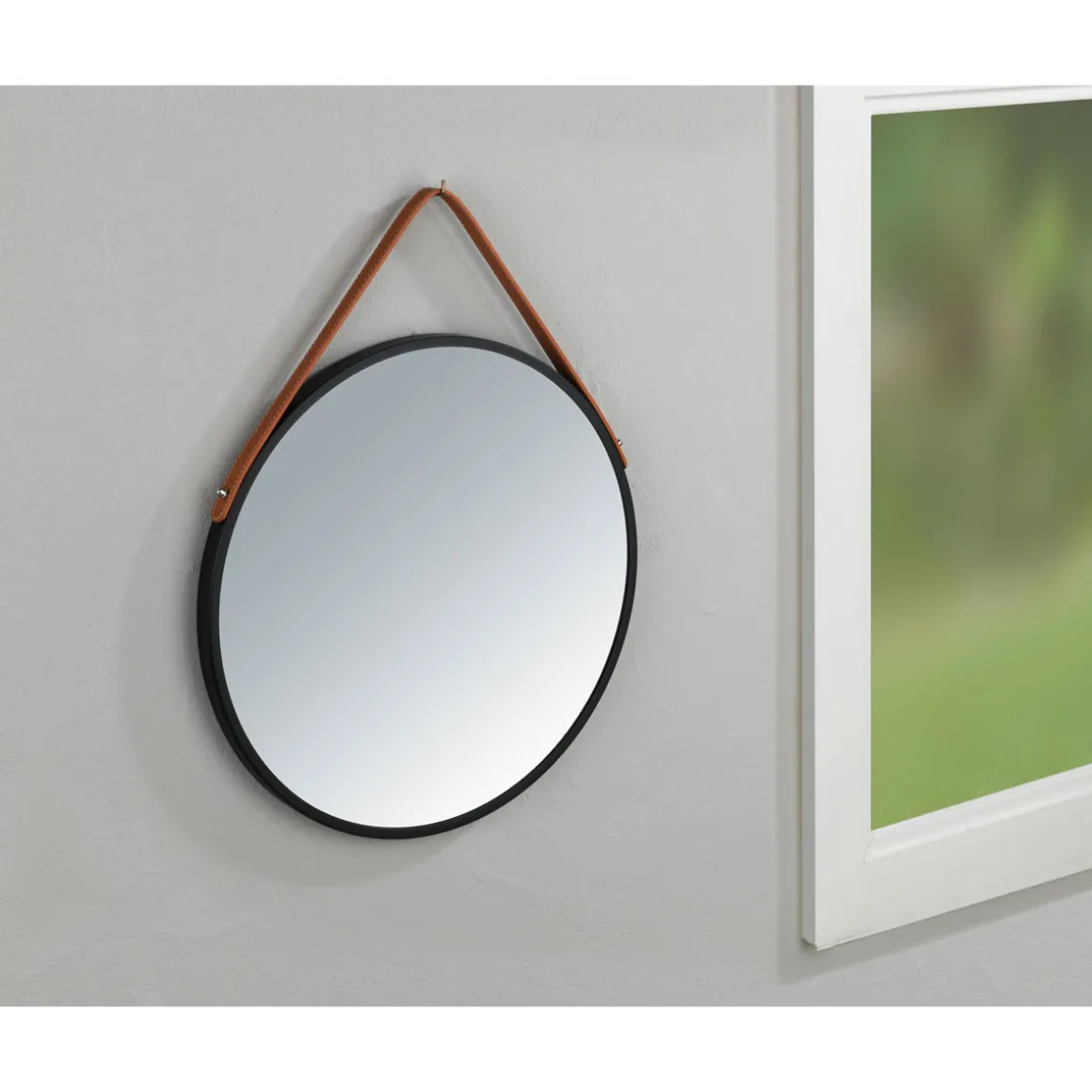 Wenko Wandspiegel Borrone rund 40 cm schwarz mit Aufhänge-Gurt