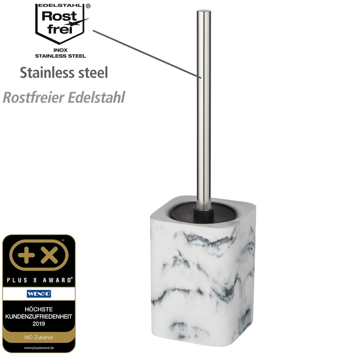 Mit der Wenko Desio WC-Garnitur holen Sie sich stilvolle Eleganz in Ihr Badezimmer. Das Standmodell aus Polyresin besticht durch sein edles Marmor-Design und die eckige Form.