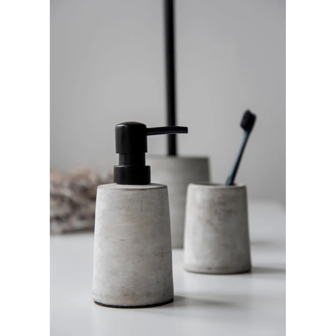 Mit der Wenko WC-Garnitur Villena wird die Reinigung Ihres Badezimmers zum stylischen Erlebnis. Der Beton-Bürstenhalter mit Edelstahl-Stiel und abstraktem Design fügt sich perfekt in jedes moderne Bad ein.