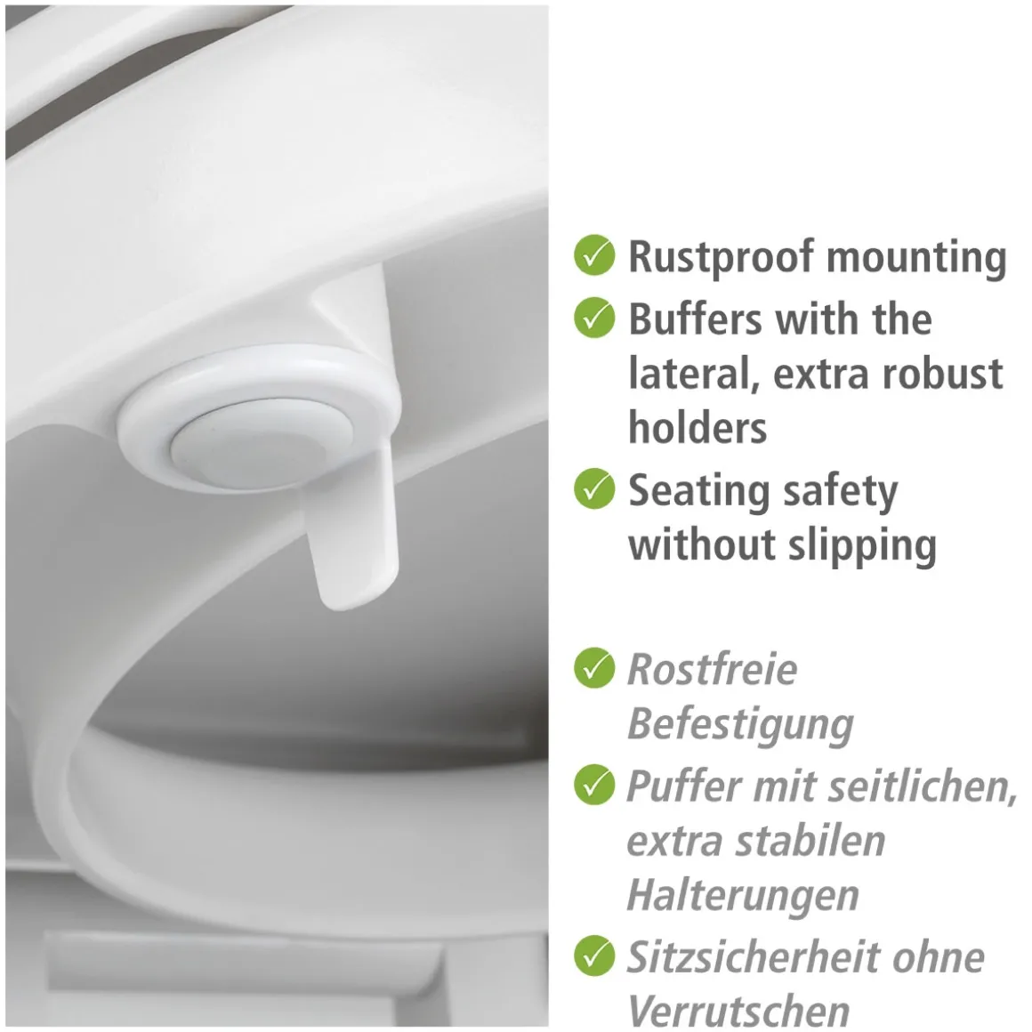 Erleben Sie höchsten Komfort und Sicherheit im Badezimmer mit dem Wenko WC-Sitz Secura Comfort. Der Sitz aus antibakteriellem Duroplast ist nicht nur hygienisch, sondern auch besonders bequem dank der integrierten Sitzflächenerhöhung.