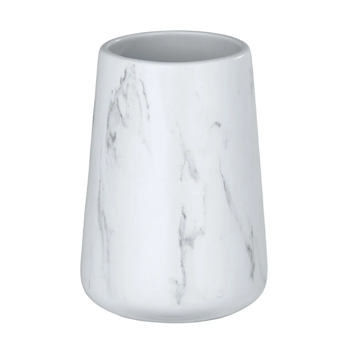 Der Wenko Zahnputzbecher Adrada in Weiß ist aus hochwertiger Keramik gefertigt und eine stilvolle Ergänzung für jedes Badezimmer. Mit einer Höhe von 12 cm bietet er ausreichend Platz für Zahnbürsten und Mundspülung.