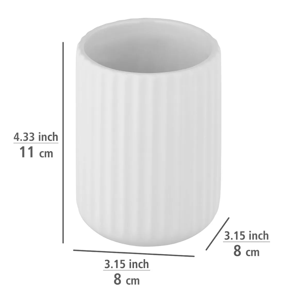 Der Wenko Zahnputzbecher Belluno ist ein praktischer und stilvoller Begleiter im Badezimmer. Mit seinem Durchmesser von 8 cm bietet er ausreichend Platz für Zahnbürsten und Zahnpasta. Die weiße Keramik verleiht dem Becher eine edle Optik, die jedes Badezimmer aufwertet.