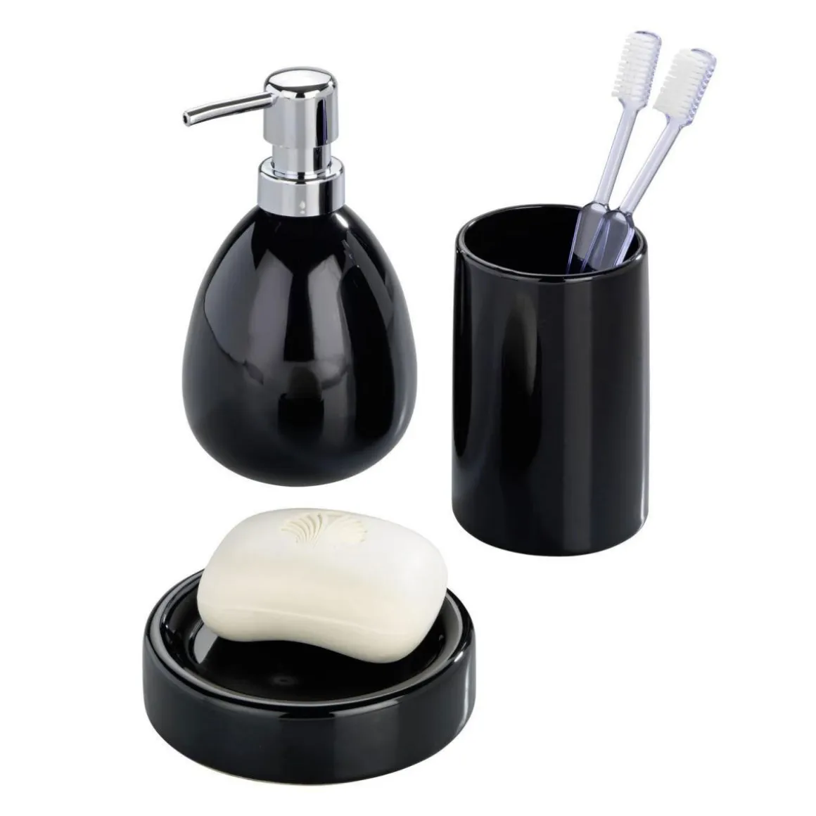 Der Wenko Zahnputzbecher Polaris in Schwarz ist ein praktisches und stilvolles Accessoire für jedes Badezimmer. Mit seinem runden Design aus Keramik fügt er sich perfekt in jede Einrichtung ein.