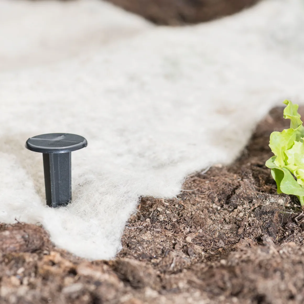 - Bodenanker durch das Vlies/die Folie in die Erde drücken