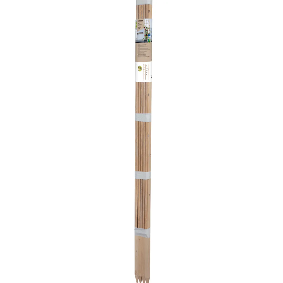 - Einfach die Rundstäbe in die vorgebohrten Löcher stecken und fertig ist die Rankhilfe