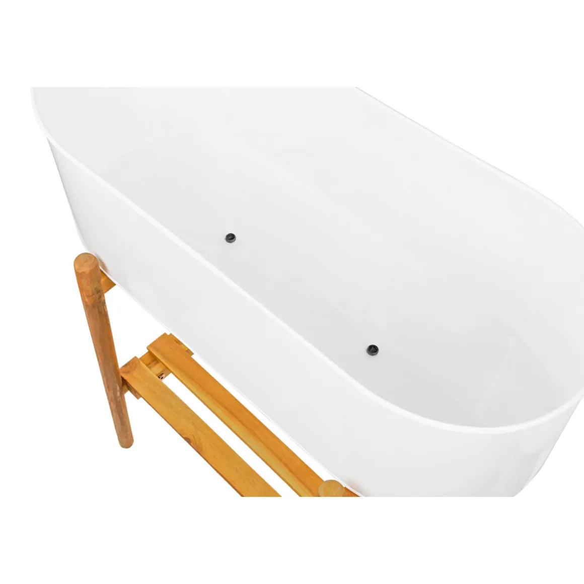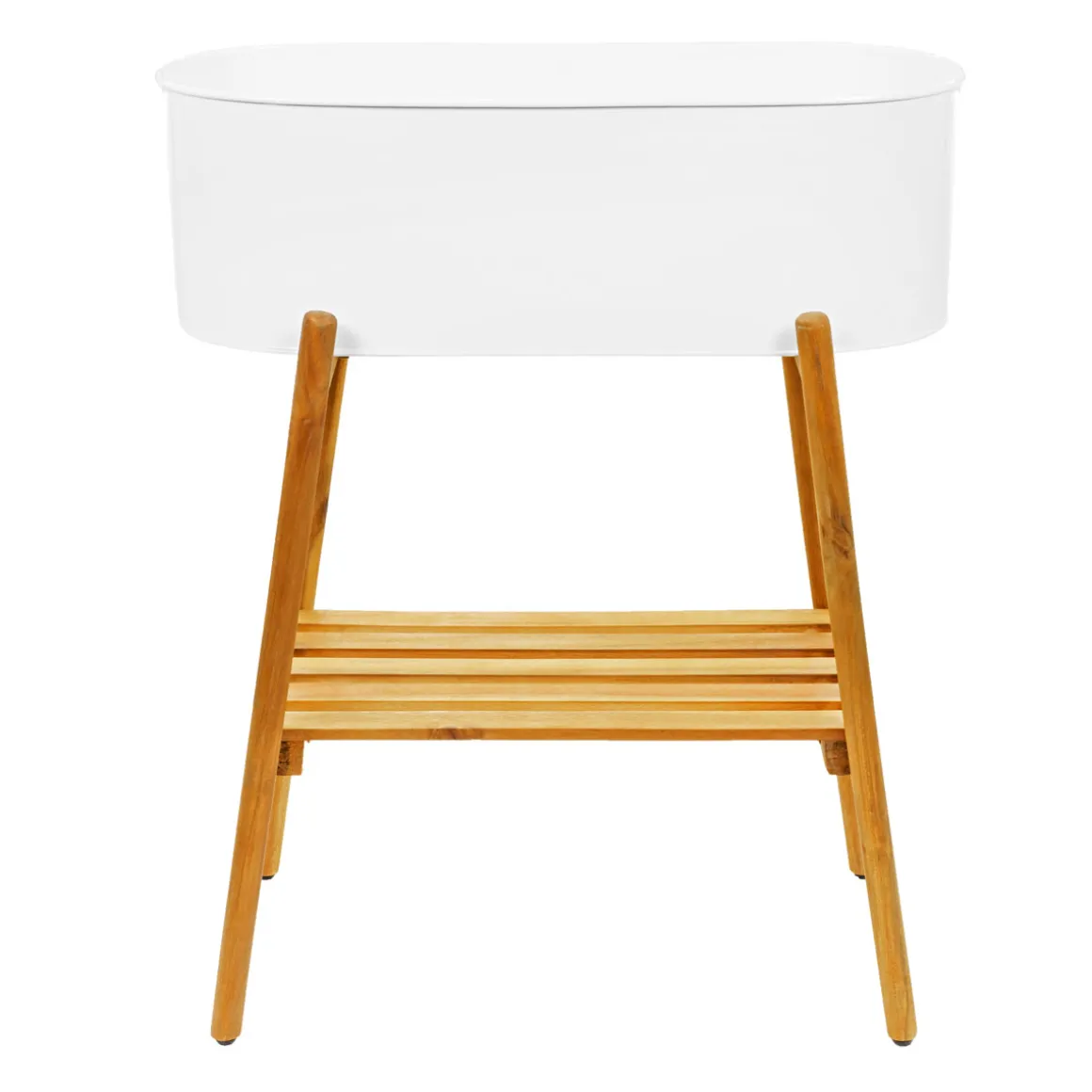 Hochbeet in weiß, Akazienholz/pulverbeschichtetes Zink, mit praktischen Nivellierfüßen zum Ausgleich von Bodenunebenheiten.