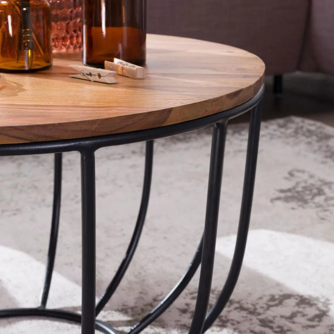 | Material: | Sheesham Massivholz, Schwarz lackiertes Eisen |
