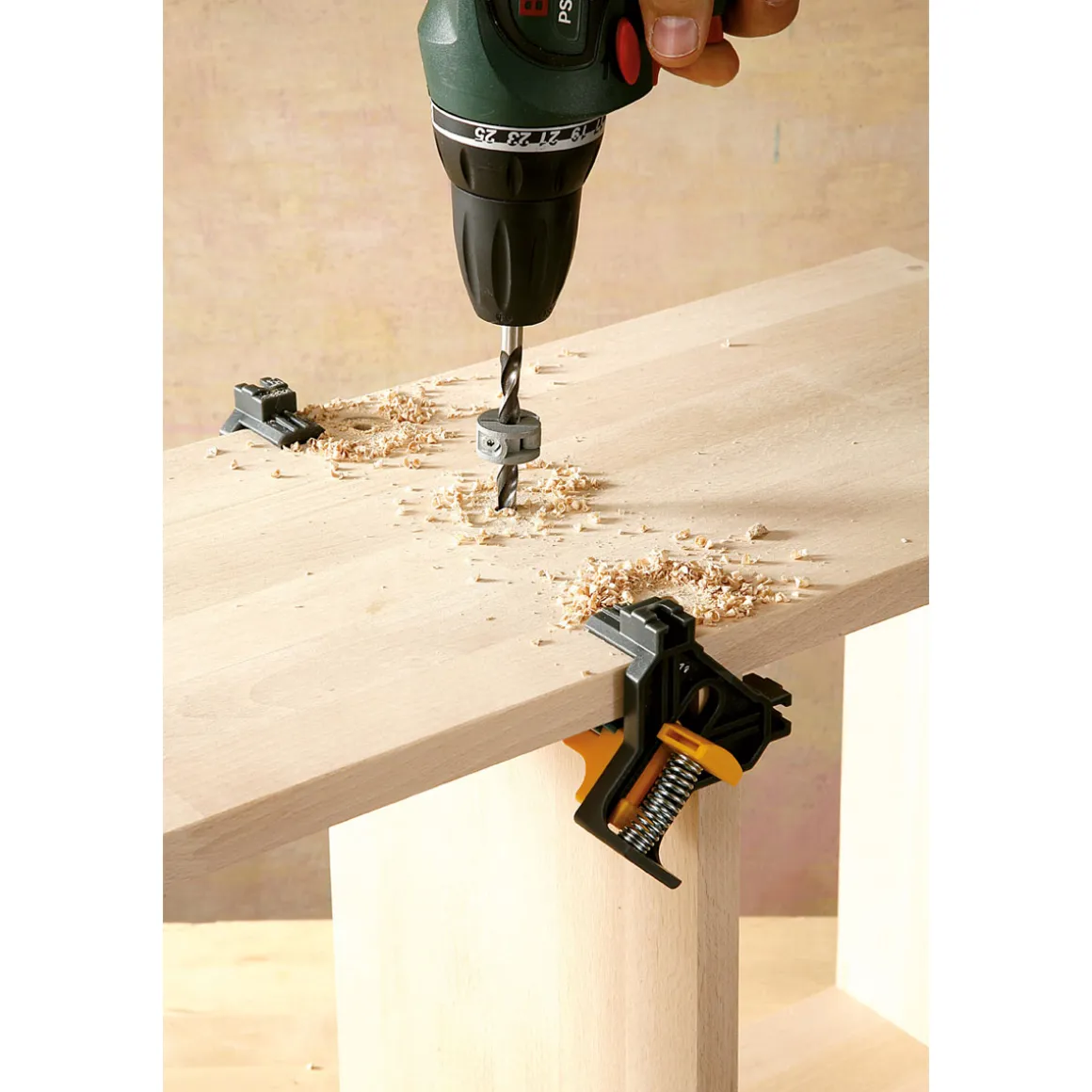 Mit den Wolfcraft 2 Eckenspannern ES 22 wird das Verschrauben oder Leimen von Werkstücken im 90°-Winkel zum Kinderspiel. Dank der automatisch angepassten Spannweite und rutschhemmenden Zonen sind die Spanner für Brettstärken von 10 bis 22 mm geeignet.