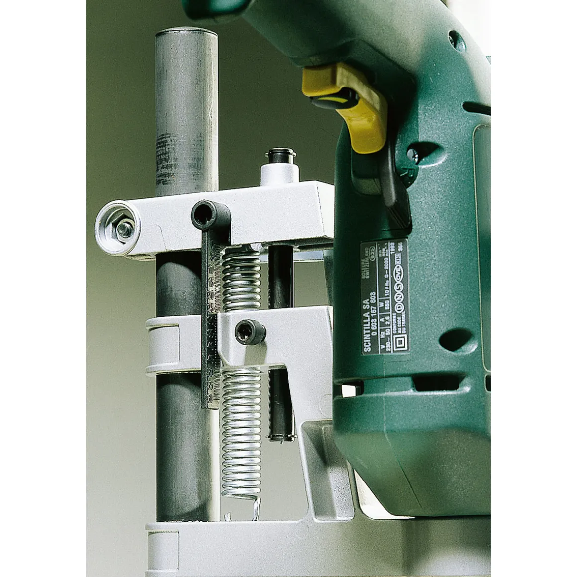 Wer in seiner Werkstatt präzise arbeiten möchte, sollte sich den Wolfcraft Bohrständer nicht entgehen lassen. Mit einer Arbeitshöhe von 34,5 cm und einer integrierten Rückholfeder ist er besonders komfortabel zu bedienen. Die gefräste Arbeitsfläche mit Spannnuten sorgt für zusätzliche Stabilität beim Befestigen von Spannpratzen oder Schraubstöcken. Der Ständer eignet sich für alle Maschinen mit Euronorm-Spannhals Ø 43 mm.