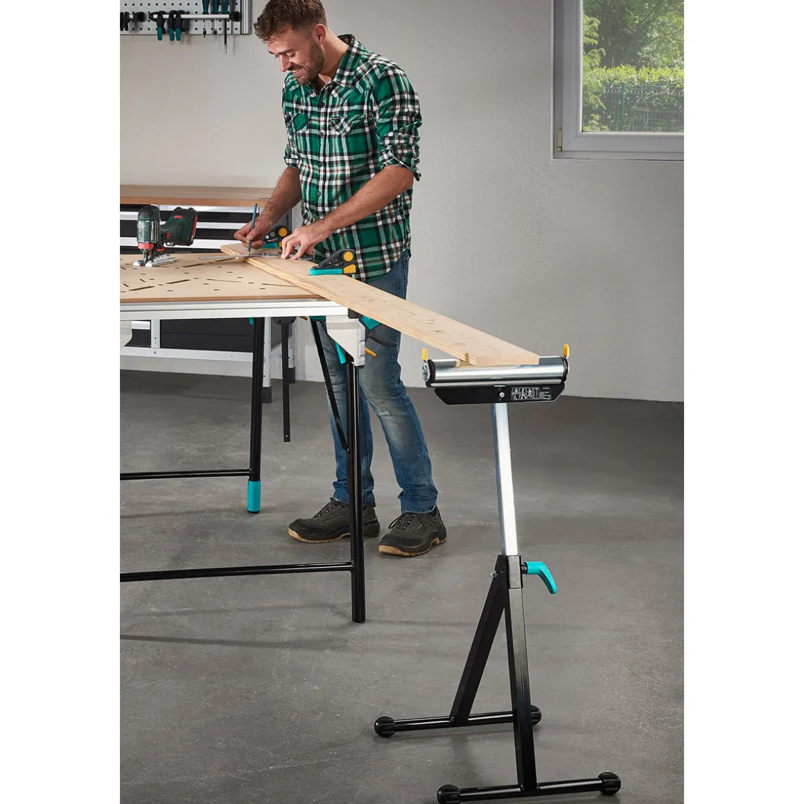 Mit dem Wolfcraft Rollenbock wird das Arbeiten an langen Werkstücken zum Kinderspiel. Die robuste Konstruktion aus Metall und Kunststoff sorgt für eine hohe Belastbarkeit von bis zu 60 kg. Durch die verstellbare Arbeitshöhe von 640 mm bis 1.000 mm ist der Rollenbock flexibel einsetzbar und eignet sich perfekt für Sägetische, Werkbänke und Rasentrimmer.