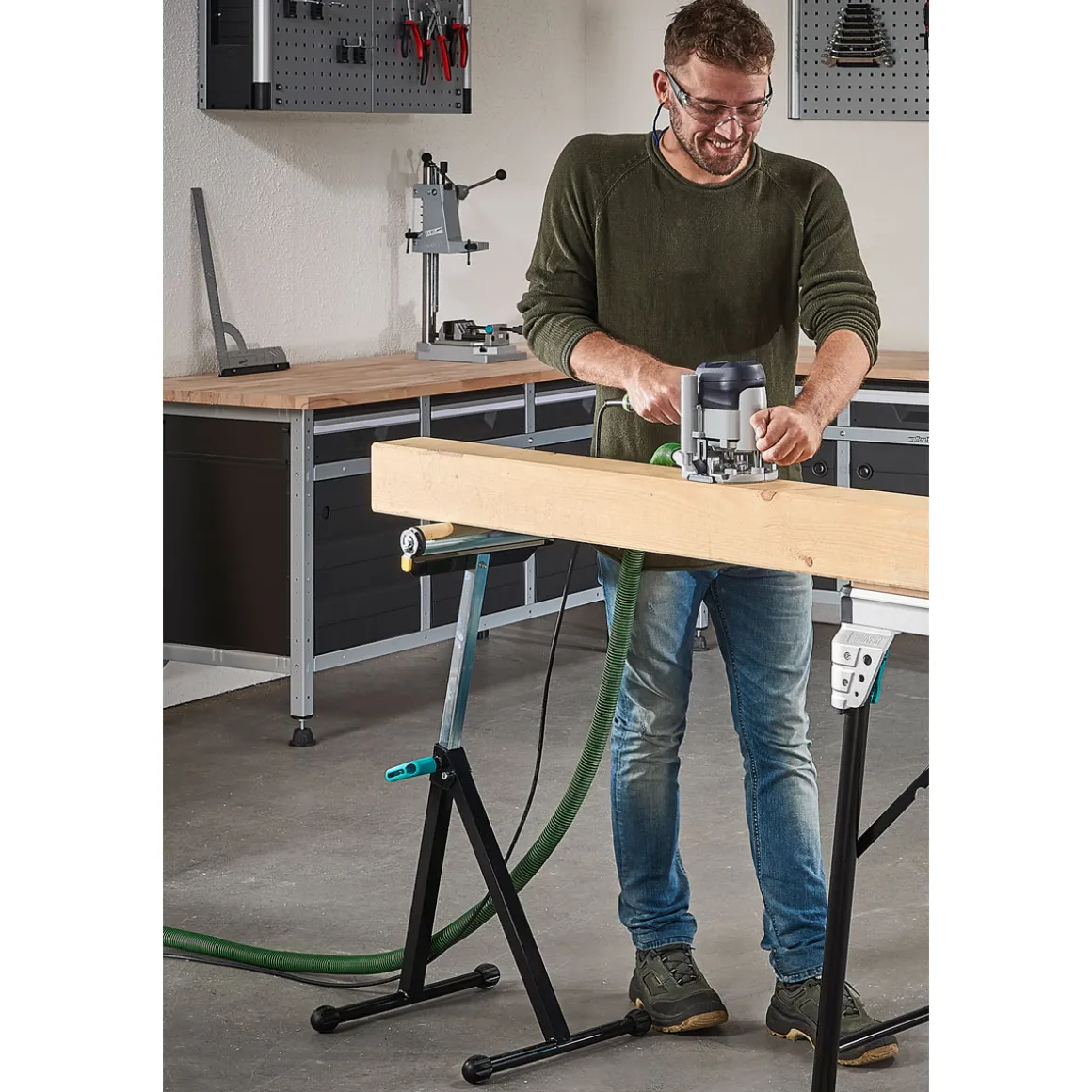 - Geeignet für: Lange Werkstücke, Sägetische und Werkbänke, Rasentrimmer