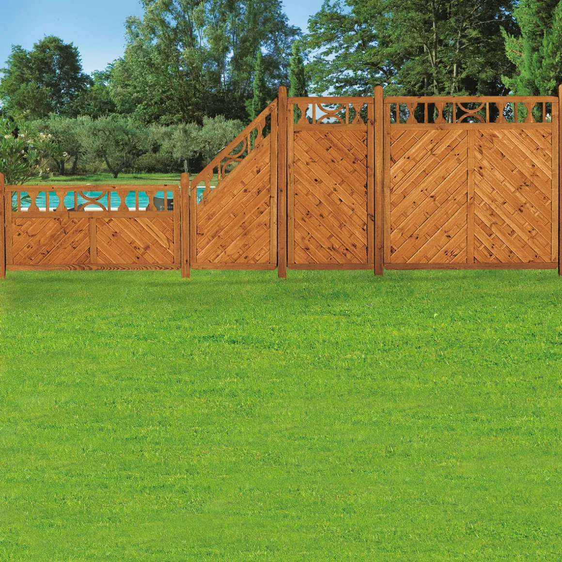 Zaunteil Ornament geölt 180 x 180 cm – Sichtschutzzaun für den Außenbereich