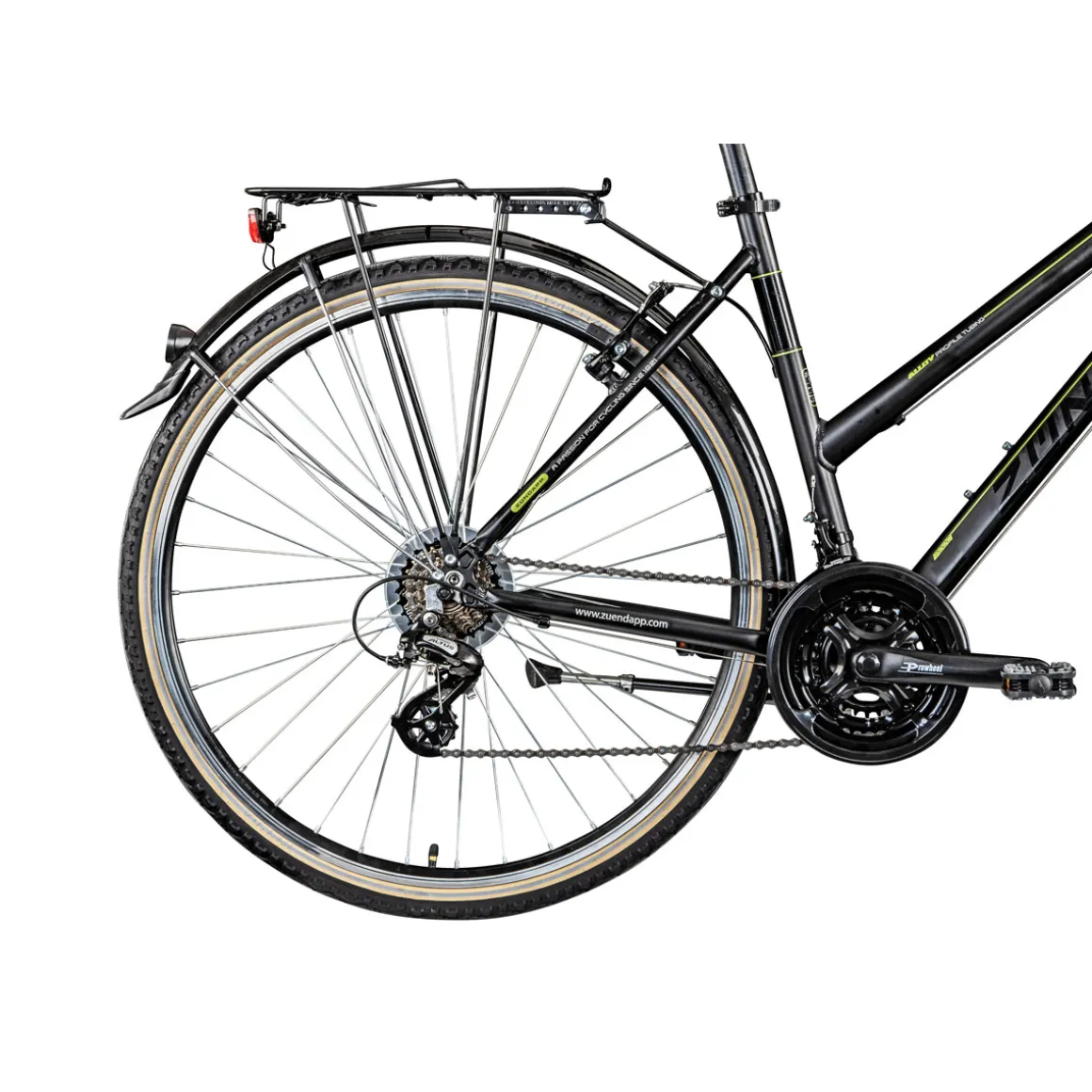 - Ausstattung: Reflektoren, Glocke, Seitenständer, Beleuchtung, Schutzbleche, Gepäckträger, Kettenschutz