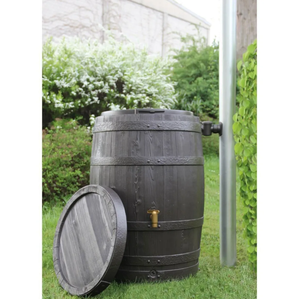 4rain Regenfass Vino mit Deckel 250 L braun – Bewässerungstechnik für den Außenbereich
