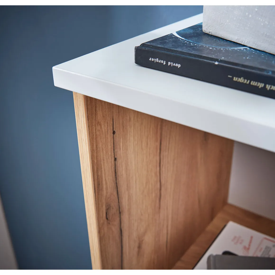 Der Aktenschrank Lionel in Weiß/Navarra-Eiche-Nachbildung ist die perfekte Kombination aus Stil und Funktionalität. Mit seinen offenen Fächern bietet er Ihnen nicht nur großzügigen Stauraum, sondern auch eine moderne Optik, die sich harmonisch in jedes Ambiente einfügt. Die innovative Push-to-open-Technik sorgt dafür, dass Sie Ihre Dokumente und Gegenstände mühelos verstauen können – ganz ohne störende Griffe. Dieses Möbelstück vereint hochwertige Materialien mit durchdachtem Design, sodass Sie sich auf langlebige Qualität verlassen können.