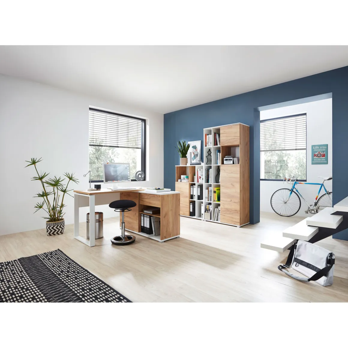 - Offene Fächer bieten schnellen Zugriff auf häufig genutzte Dokumente oder Dekorationsartikel