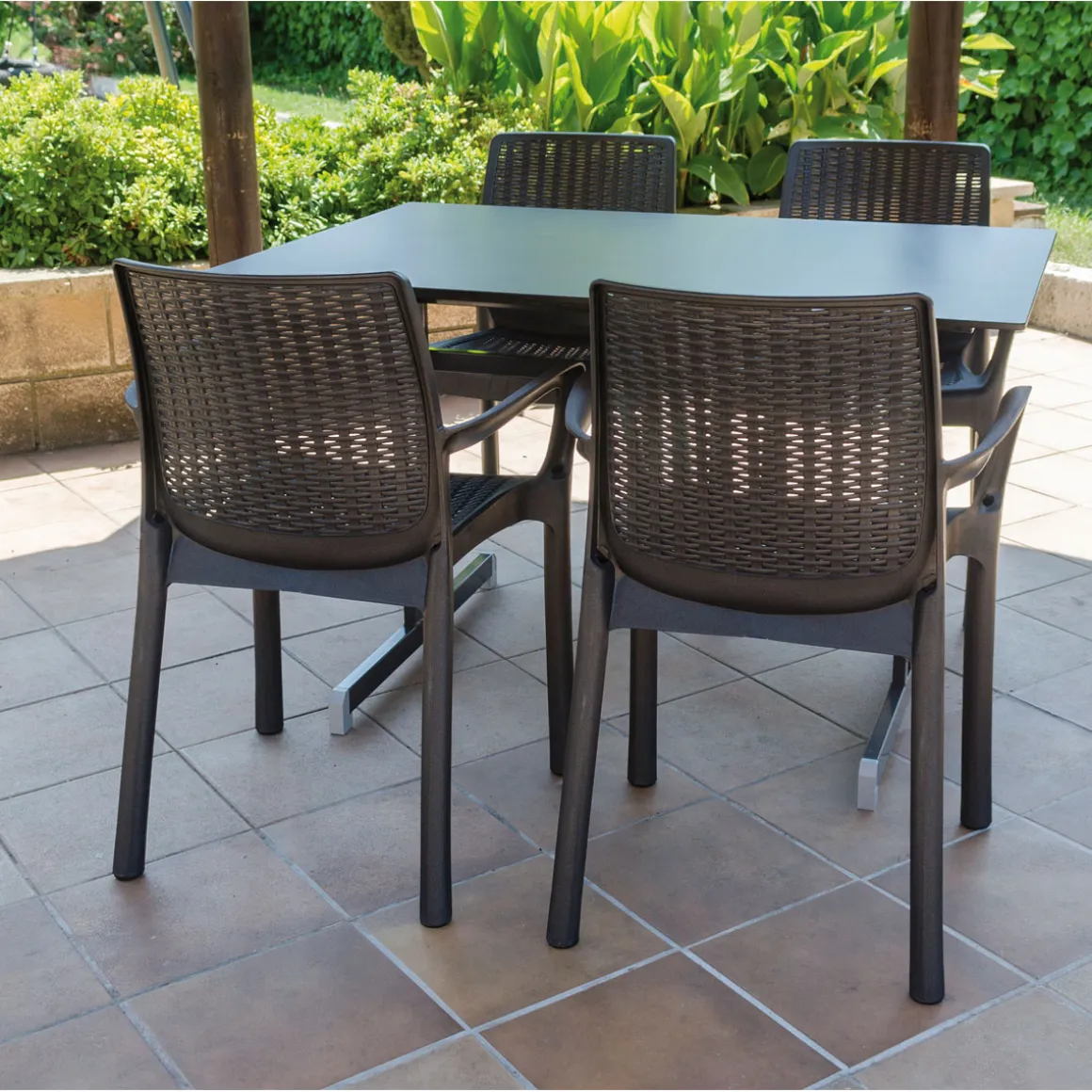 - Wetterfeste Tischplatte aus WPC (Holz-Kunststoff-Verbundwerkstoff) für langanhaltende Qualität