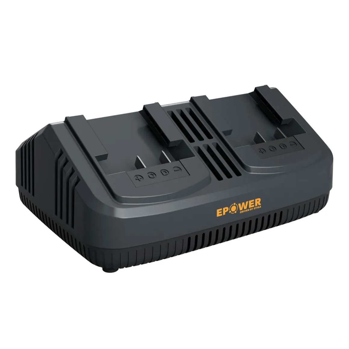 - Zwei Akkuladefächer für gleichzeitiges Aufladen von zwei Akkus