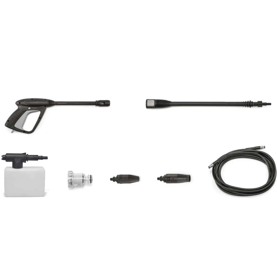 - Langer Hochdruckschlauch mit einer Länge von 5 Metern ermöglicht ein bequemes Arbeiten ohne ständiges Umstellen des Geräts