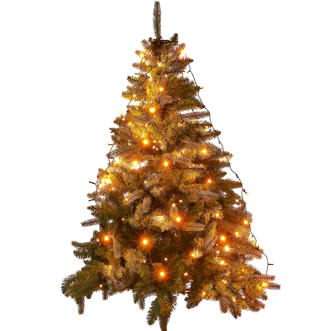 Der LED-Baummantel mit Ring hat 120 funkelnde und 120 statische LED. Diese 240 LEDs sind auf 8 Stränge mit je 30 LEDs aufgeteilt. Die Farben sind bernsteinfarbene und warmweiße LEDs. Die Zuleitung beträge 10 Meter. Die Höhe vom Baummantel beträgt ca. 2,4 Meter. Der Baummantel ist für Innen und Außen geeignet.