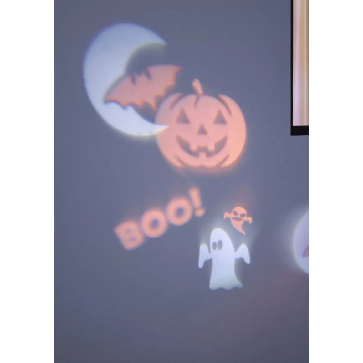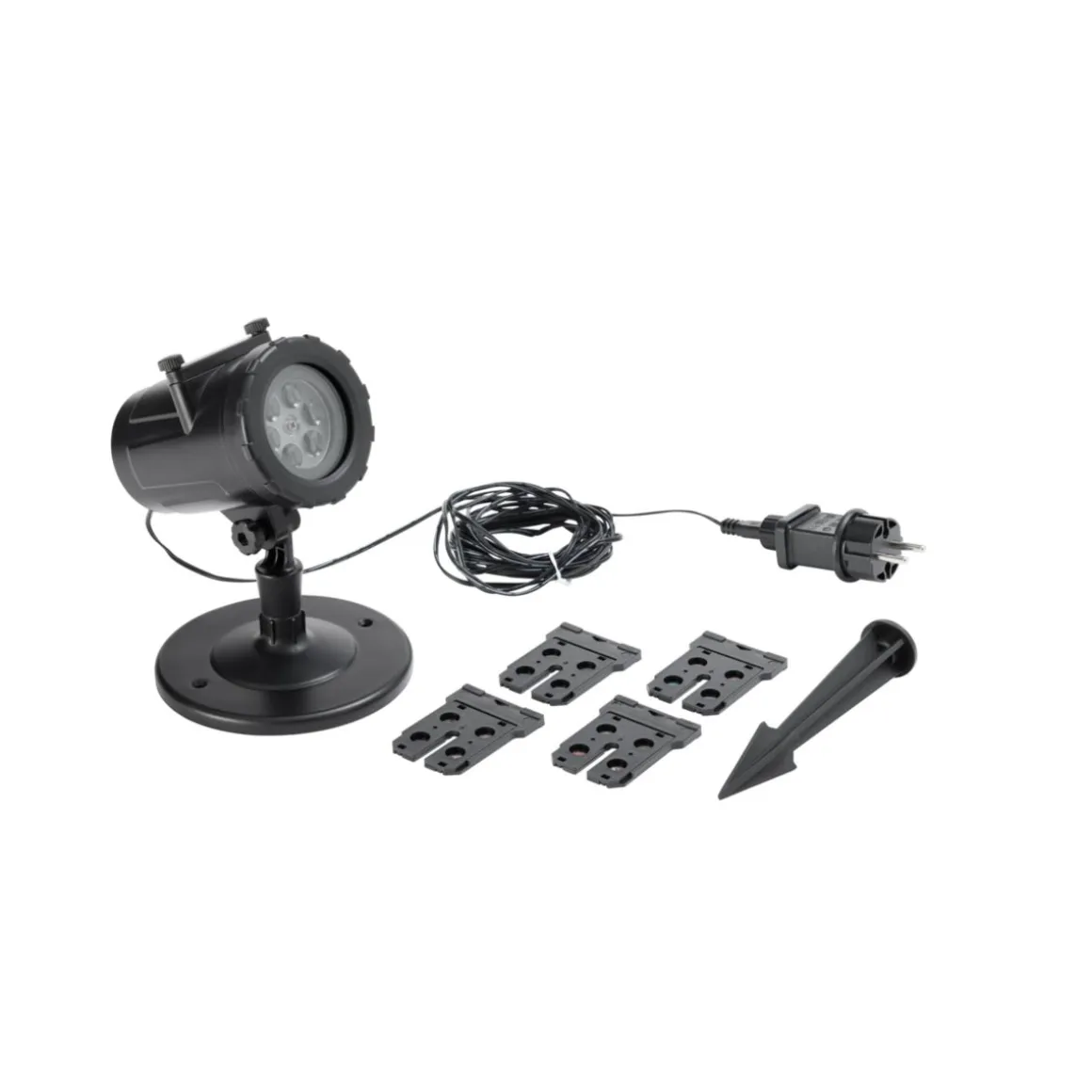 - Im Lieferumfang enthalten sind ein Projektorgehäuse sowie vier verschiedene Motivplatten zum individuellen Wechseln je nach Anlass