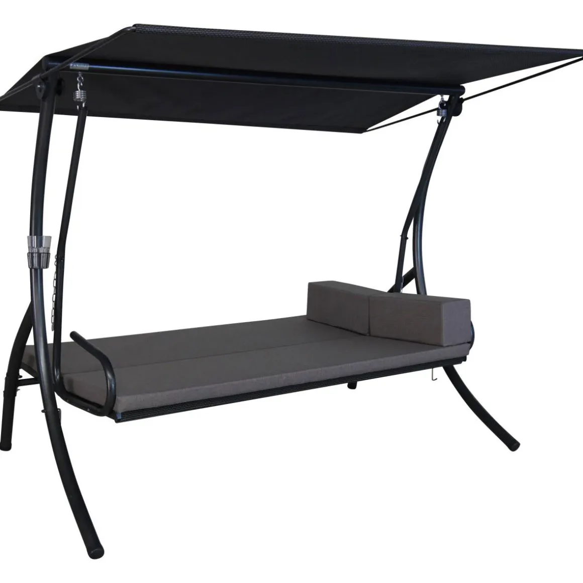 Die 3-Sitzer Angerer Hollywoodschaukel Elegance Tolar in der Farbe taupe lässt sich mit wenigen Handgriffen zur bequemen Liegefläche verwandeln. Das wetterfeste Sonnendach ist verstellbar. Die Kissen sind aus einem besonders hochwertigen und angenehmen Stoff gefertigt und lassen sich dank der praktischen Reißverschlüsse einfach abziehen und bei 30° C in der Maschine waschen. Das robuste Gestell der Hollywoodschaukel besteht aus verzinktem und pulverbeschichtetem Stahl.