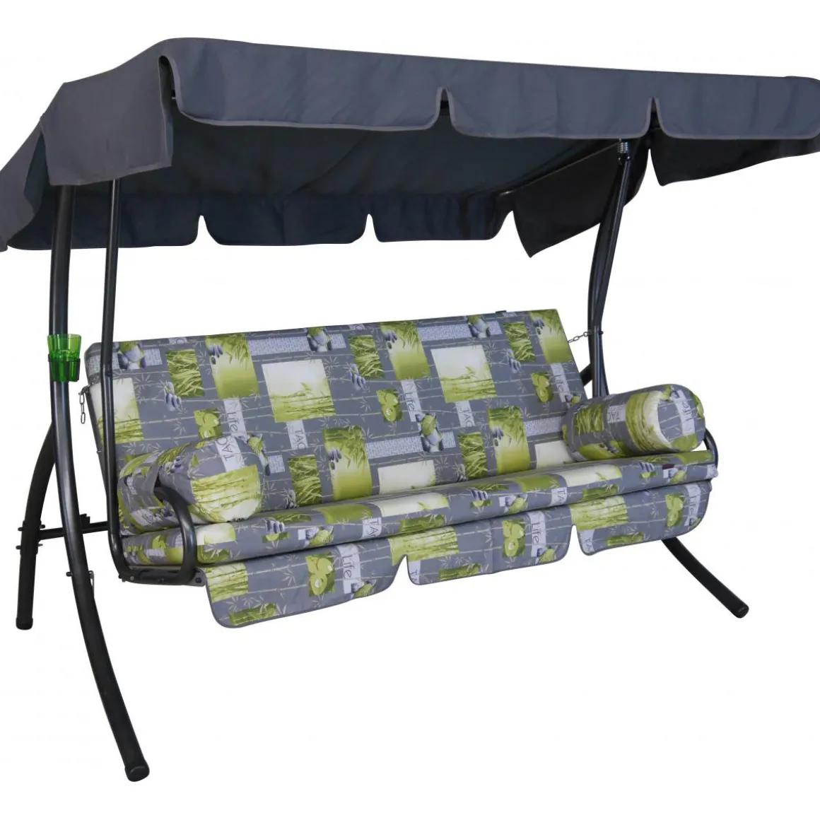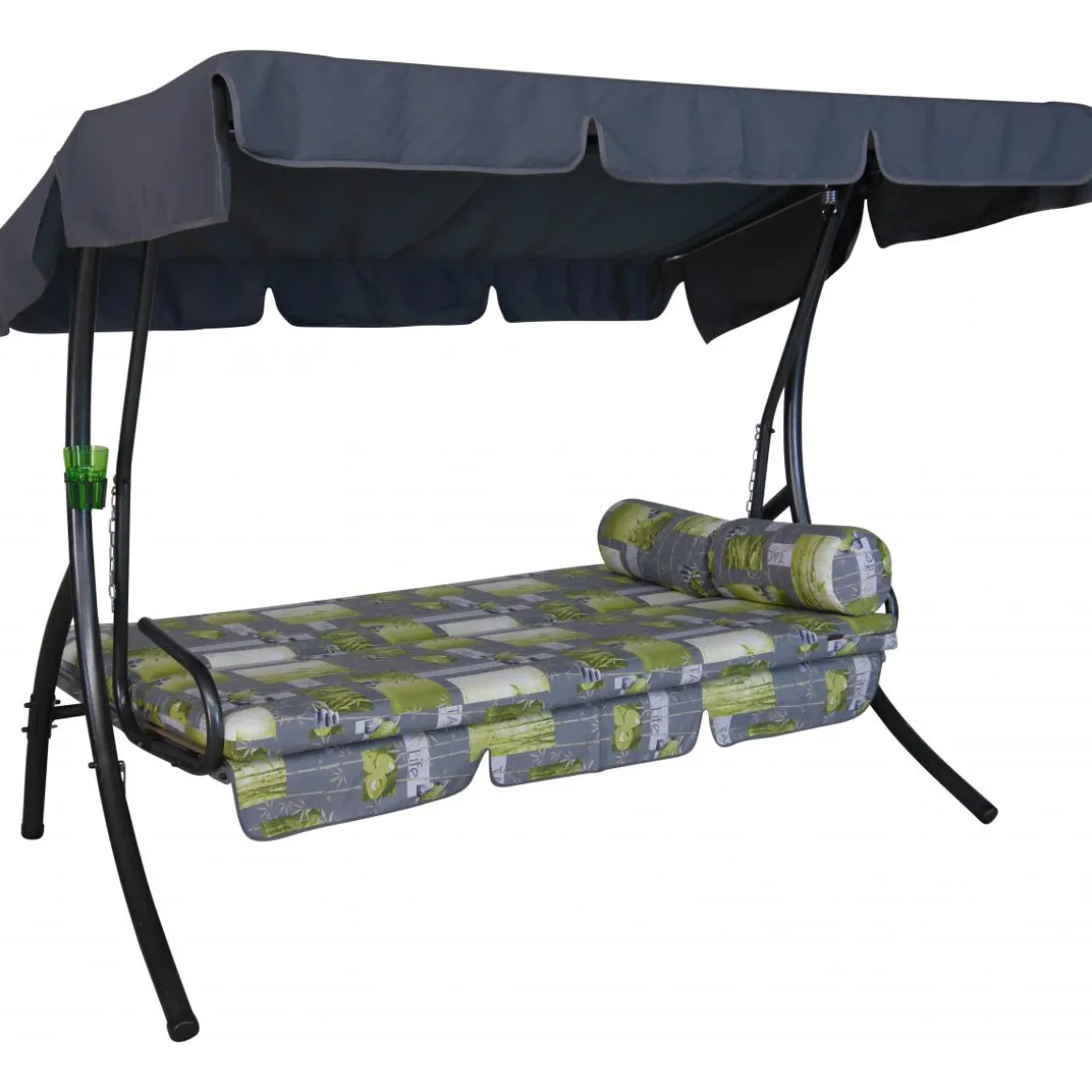 Die 3-Sitzer Angerer Hollywoodschaukel Trend im Design Bambus grau lässt sich mit wenigen Handgriffen zur bequemen Liegefläche verwandeln. Das waschbare Stoff-Sonnendach ist verstellbar. Die Kissen lassen sich dank der praktischen Reißverschlüsse einfach abziehen und bei 30° C in der Maschine waschen. Das robuste Gestell der Hollywoodschaukel besteht aus verzinktem und pulverbeschichtetem Stahl.