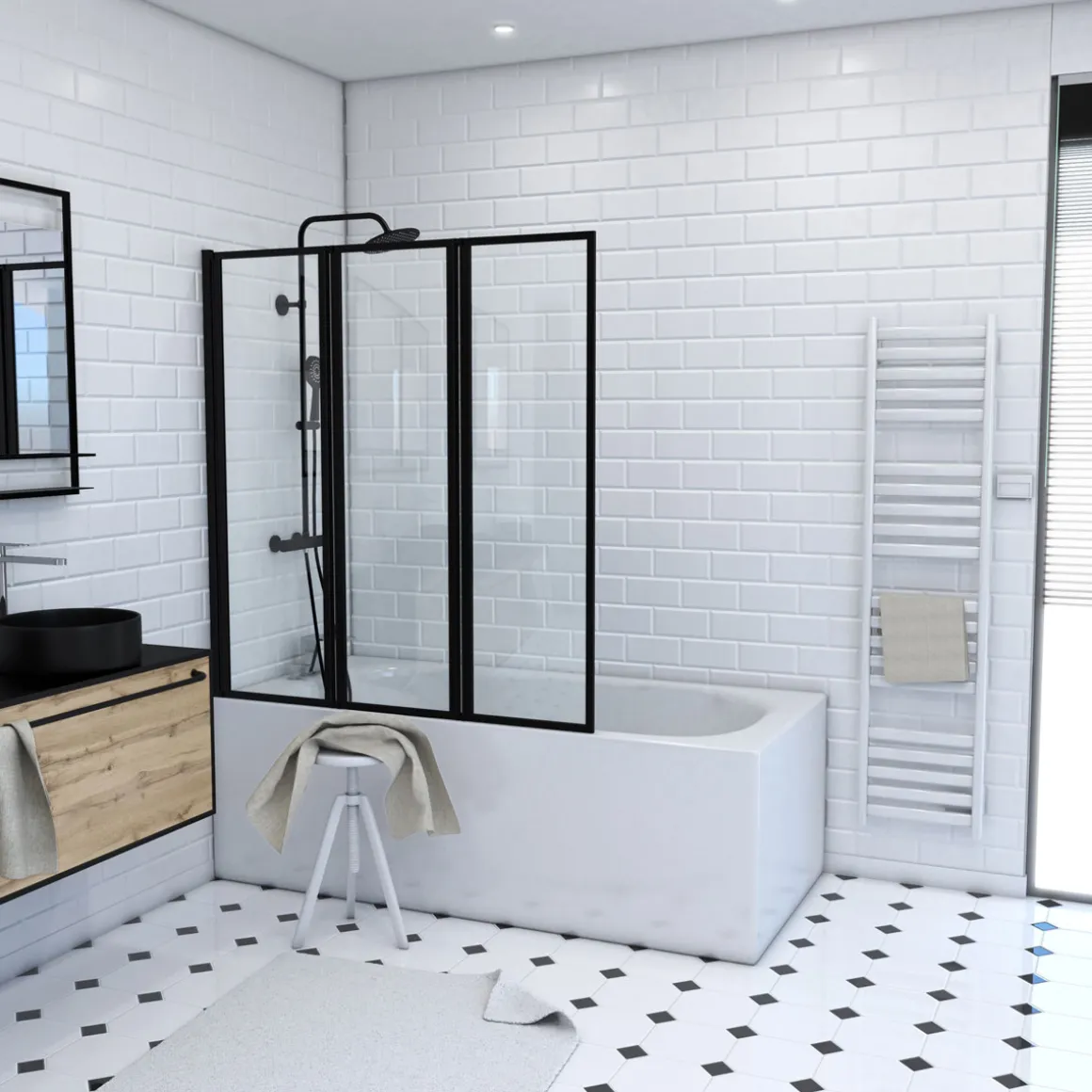 Aurlane Badewannenfaltwand Triple, Black – Platzsparend und stilvoll