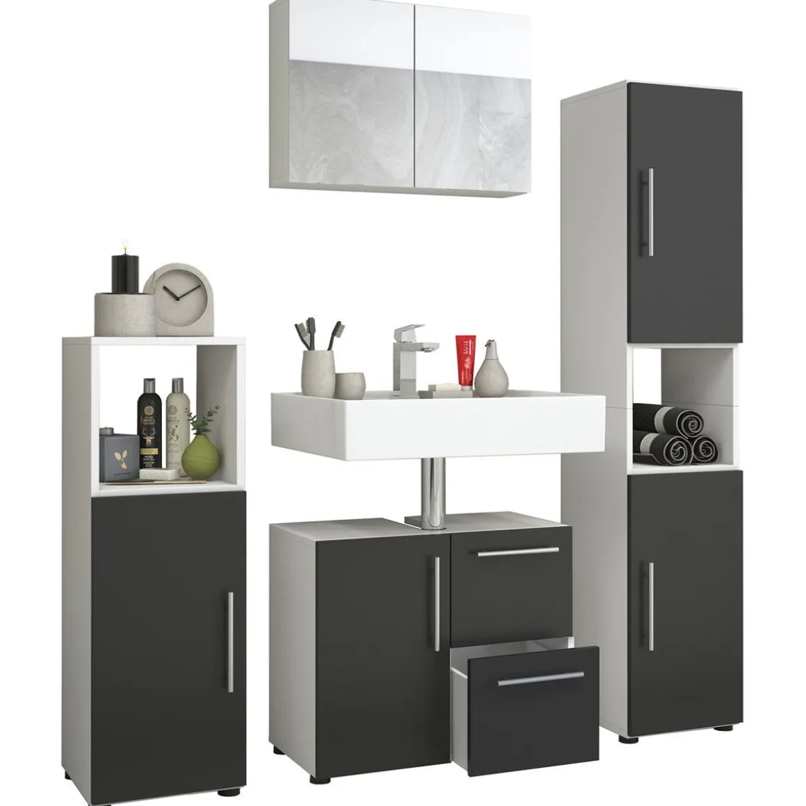 – Maße ca. H. 41,5 x B. 60 x T. 12 cmDiese moderne Badmöbelkombination bietet viel Stauraum und sorgt somit für Ordnung im Raum. Das edle und klassische Design passt in jedes Bad.