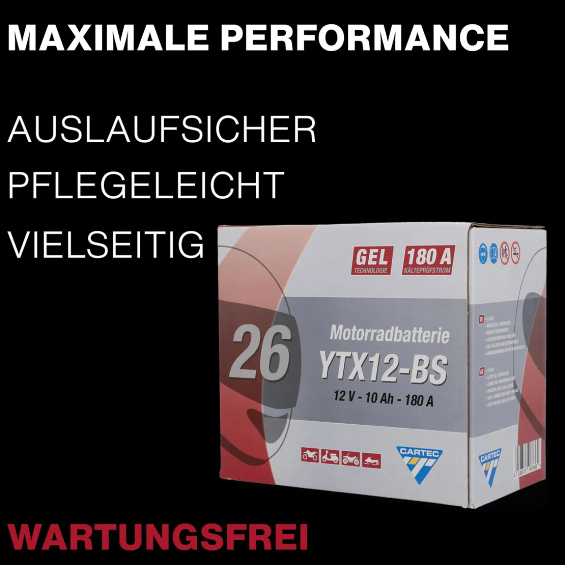 Batterie GEL YTX12-BS 12Ah 240A – Die perfekte Wahl für Motorräder, Mofas, Quads und Schneemobile