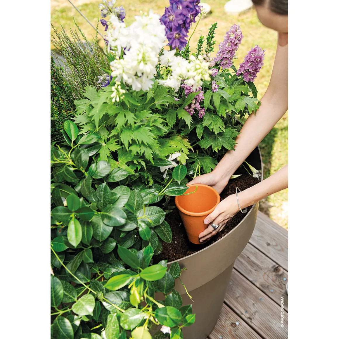 Mit dem Bewässerungskegel Aquado können Sie Ihre Pflanzen auch während Ihrer Abwesenheit optimal bewässern. Der terracotta-farbene Kegel ist aus hochwertigem Terracotta-Material gefertigt und hat eine runde Form mit einer Höhe von 32 cm. Er eignet sich für alle Arten von Pflanzen und kann bis zu 9 Tage ohne zusätzliches Gießen arbeiten.