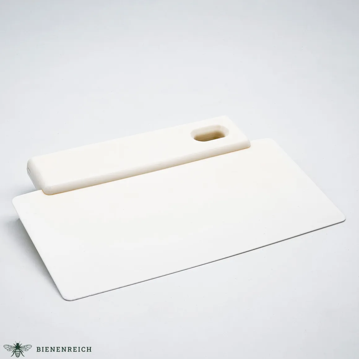 Sie lieben es, Ihren eigenen Honig zu ernten oder möchten Ihre Imkerei auf das nächste Level bringen? Dann ist der Bienenreich Honigspachtel genau das Werkzeug, das Sie brauchen! Mit seiner handlichen Größe von ca. 20x13x2 cm und dem lebensmittelechten Material aus hochwertigem Kunststoff wird die Arbeit mit Waben und Behältern zum Kinderspiel. Der Spachtel liegt angenehm in der Hand, ist leicht zu reinigen und überzeugt durch seine vielseitige Einsetzbarkeit. Ob beim Abschäumen des frischen Honigs oder bei der Verarbeitung direkt an den Waben – dieses praktische Tool macht alles einfacher. Gönnen Sie sich ein Stück mehr Effizienz und Freude bei Ihrer Imkerarbeit!
