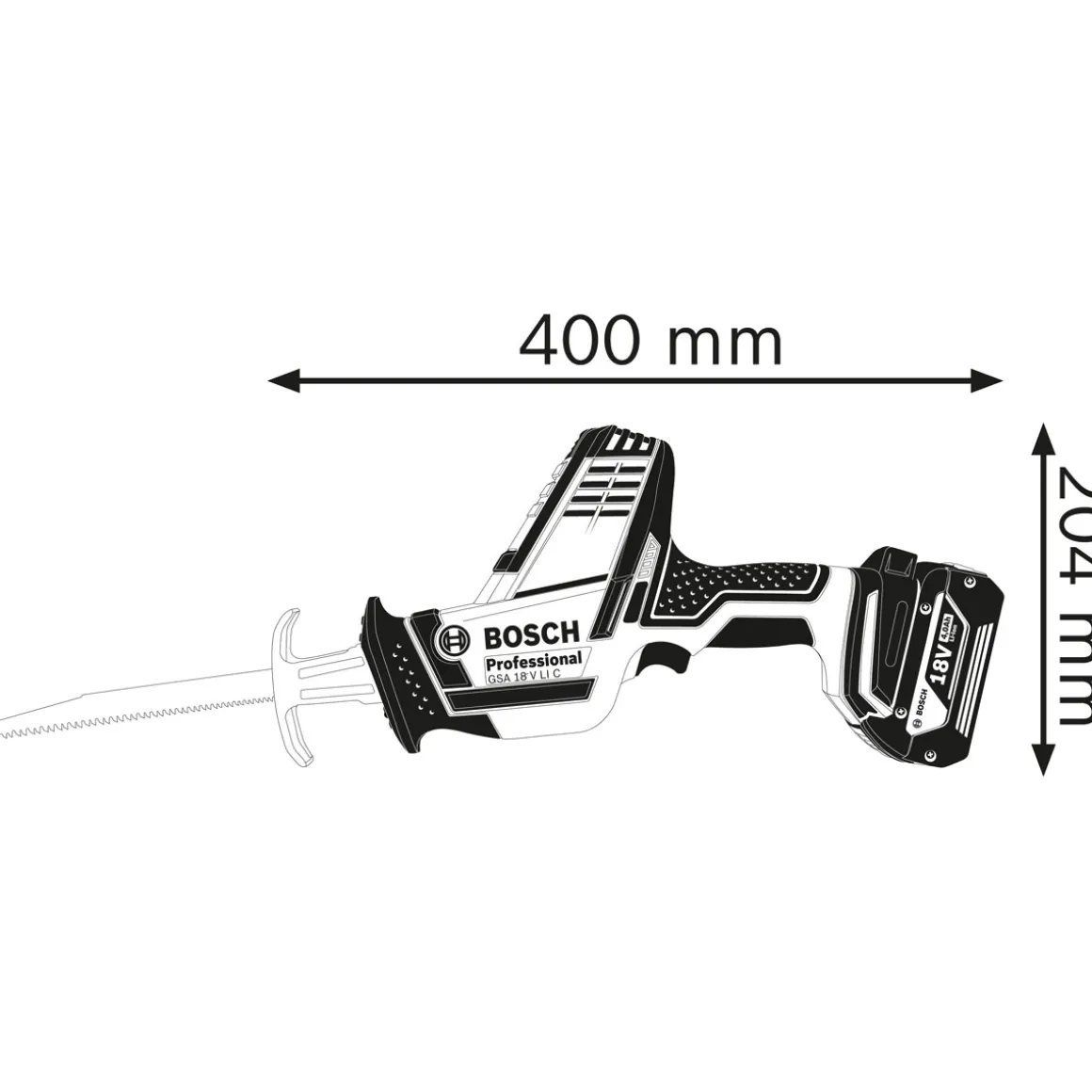 Produktdetails der Bosch Professional Akku-Säbelsäge GSA 18V-LI C solo