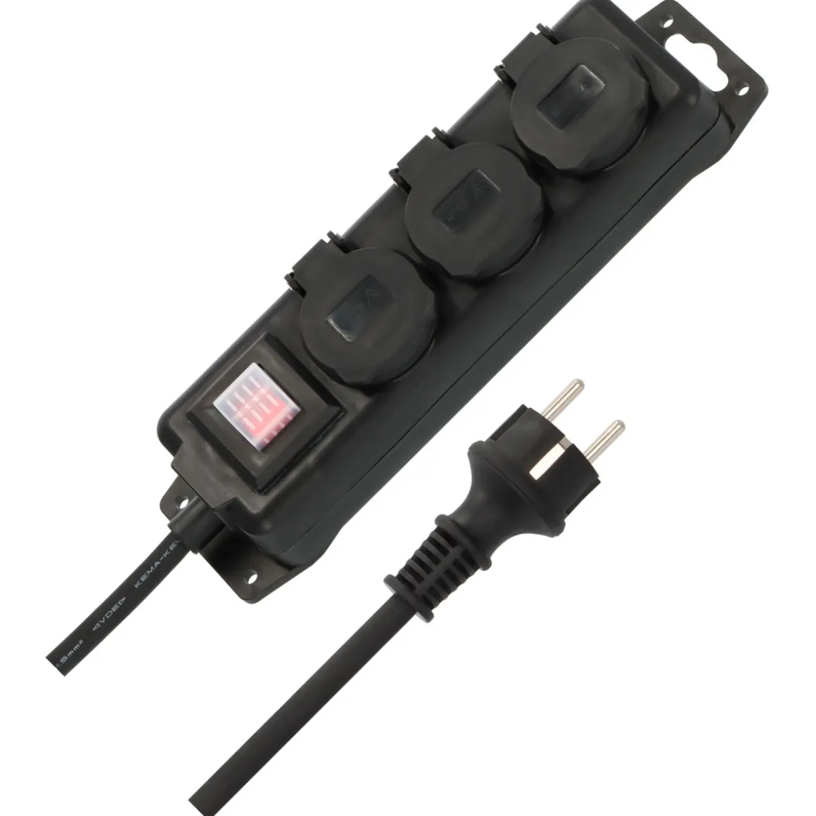 - Outdoor Steckdosenleiste mit Schalter und 3 spritzwassergeschützten Steckdosen