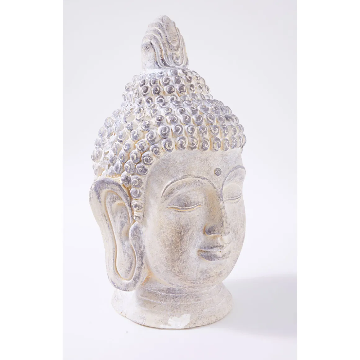Mit dem Buddha-Kopf in creme mit antikem Finish holen Sie sich ein Stück fernöstliche Spiritualität in Ihre eigenen vier Wände. Die Figur strahlt Ruhe und Gelassenheit aus und ist ein echter Blickfang.
