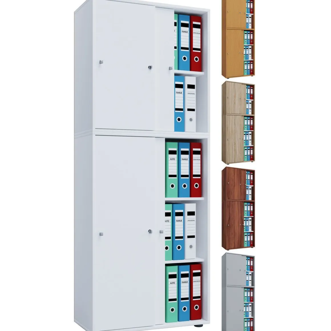 – Maße ca. B. 70 x H. 184 x T. 40 cm Der VCM Büroschrank „Lona XXL“ mit abschließbaren Schiebetüren hat ein vier Fachböden und Platz für 35 Aktenordner und andere Utensilien. Der Korpus besteht aus einer Holzstruktur-Nachbildung und besitzt eine stabile Rückwand.