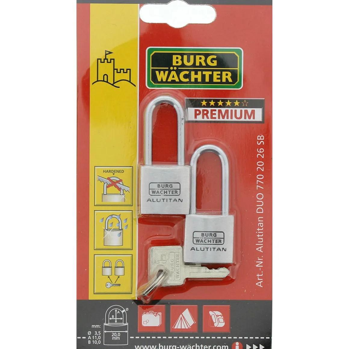 Dieses Vorhängeschloss eignet sich ideal für alle Kunden, die ihre Innenräume sicher verschließen möchten. Ob in der Wohnung oder im Büro – mit dem Burg Wächter Zylinder-Vorhängeschloss Duo sind Sie auf der sicheren Seite.