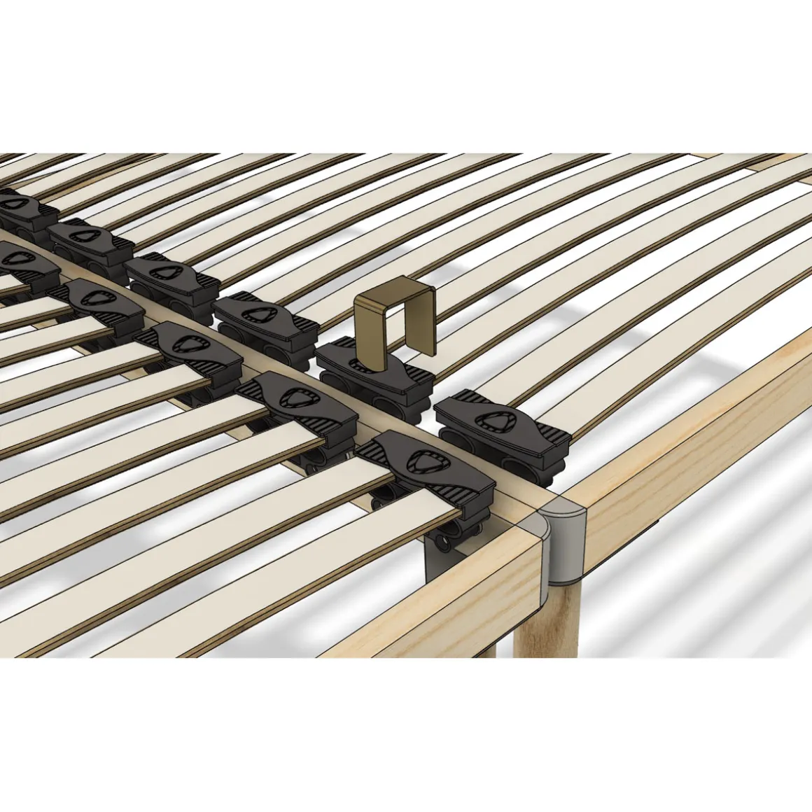 Bei dem DORADO wird QUALITÄT und KOMFORT großgeschrieben. 30 elastische Federleisten teilen den Lattenrost in 5 Liegezonen. Im Schulterbereich wurden für noch mehr Flexibilität schmalere Leisten in Triokappen verarbeitet. Im Lendenbereich ermöglichen Doppelleisten und verstellbare Härtegradschieber die optimale Anpassung an individuelle Liegewünsche. Die Leisten verfügen über eine strukturierte Antirutsch-Oberfläche, sodass die Matratze sehr guten Halt findet. Der geringe Leistenabstand gewährleistet eine ausgezeichnete Belüftung der aufliegenden Matratze.