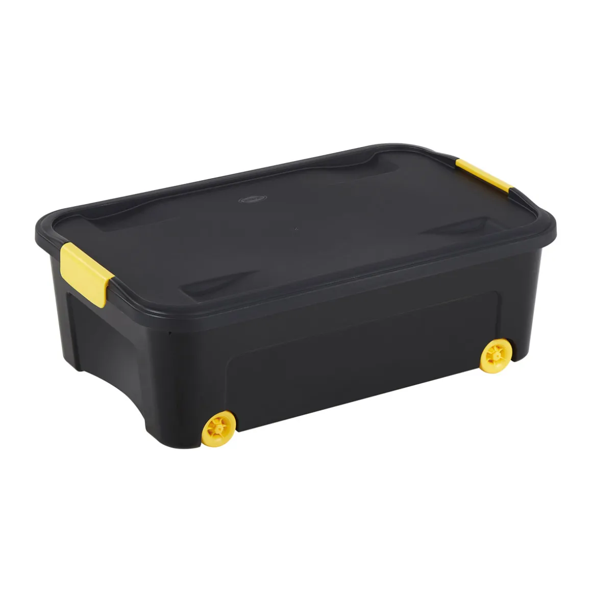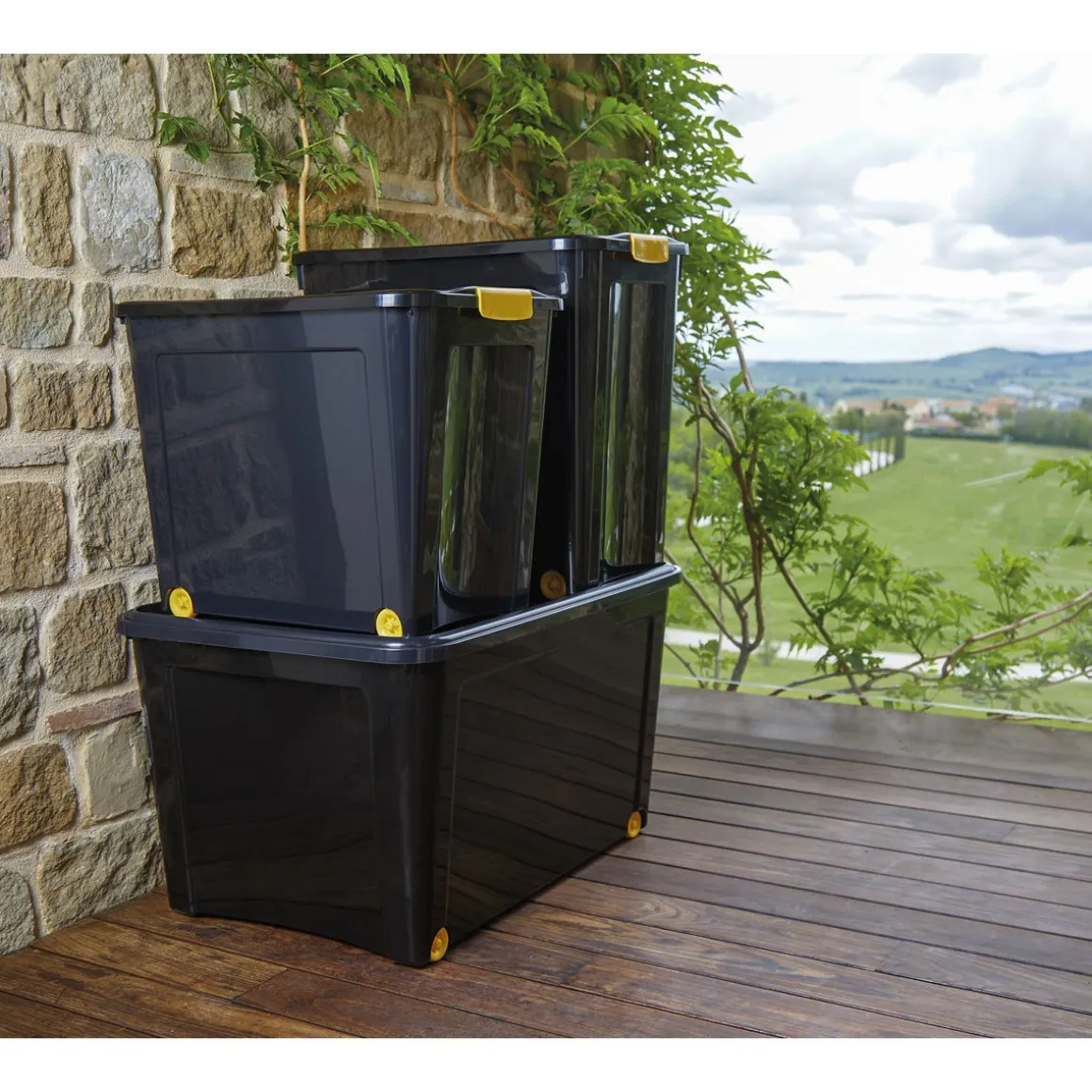 Dank des integrierten Rollensystems lässt sich die Combi Box mühelos bewegen – selbst voll beladen. Robuste Rollen sorgen für einen leichten Transport, während der stabile Griff für einen sicheren Halt sorgt. Die widerstandsfähige Kunststoffoberfläche in zeitlosem Schwarz verleiht der Box nicht nur eine edle Optik, sondern schützt auch den Inhalt vor Staub und Feuchtigkeit.